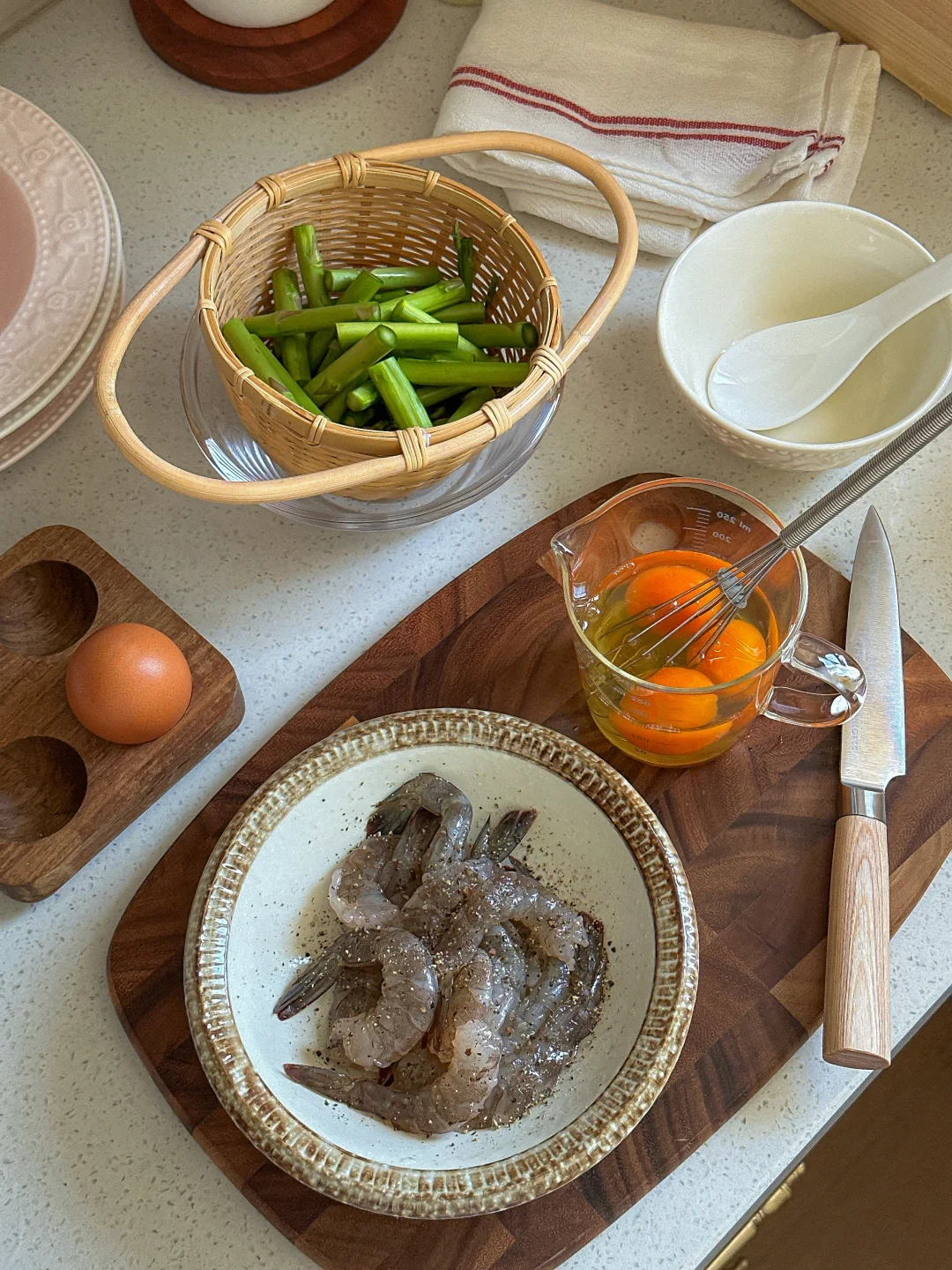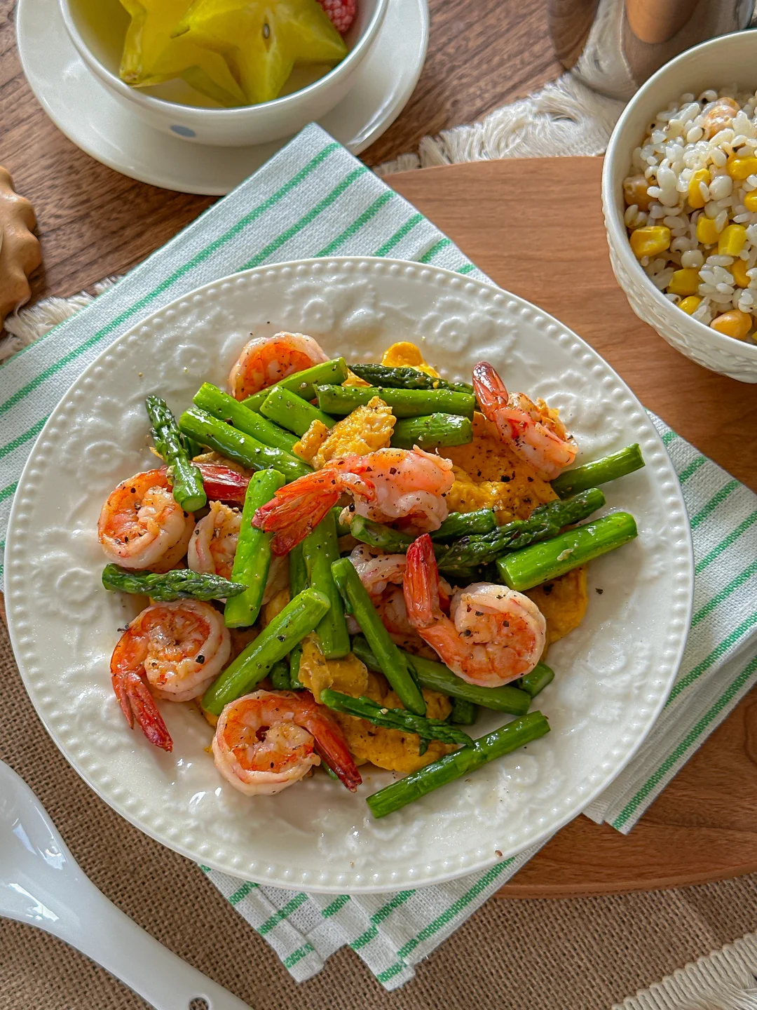今天做了超爱的芦笋虾仁滑蛋~