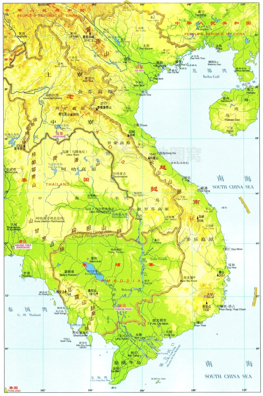 中南半岛东部民族分布和地形形势