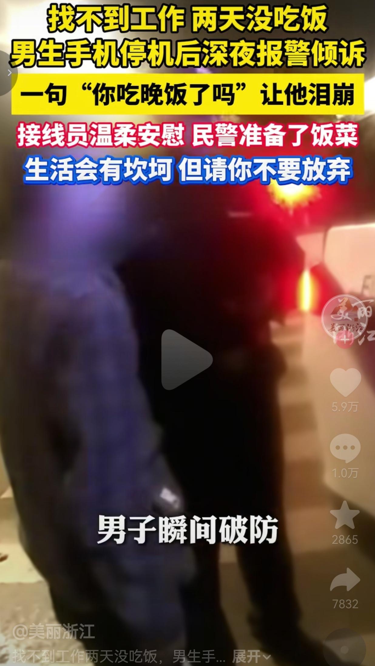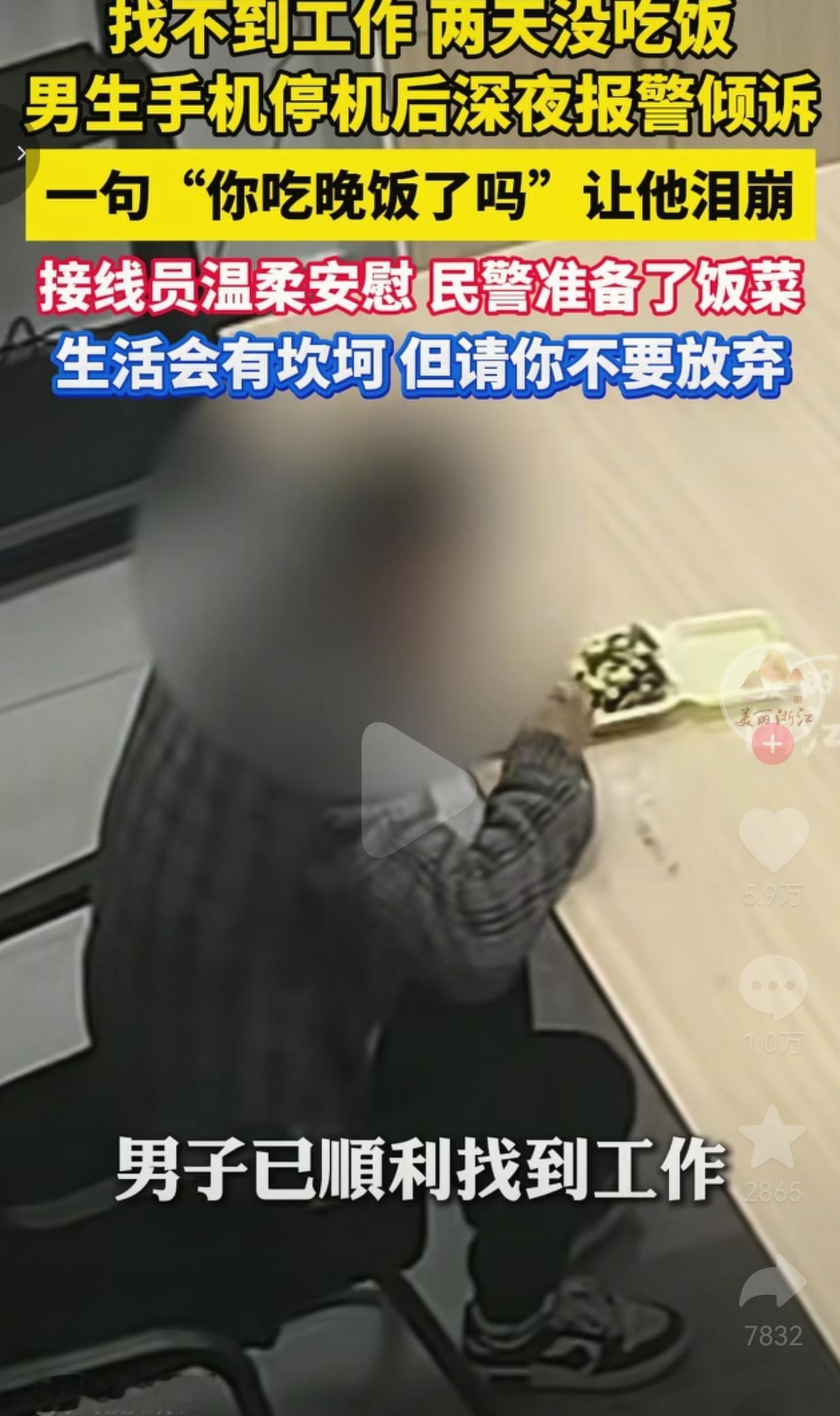泪目!一个求职碰壁、两天没吃饭、身无分文的男生,深夜打110倾诉,接线员一句“你吃晚饭了吗”,直接戳中他所有委屈,当场泪崩!这才是普通人之间最戳心的温柔救赎!