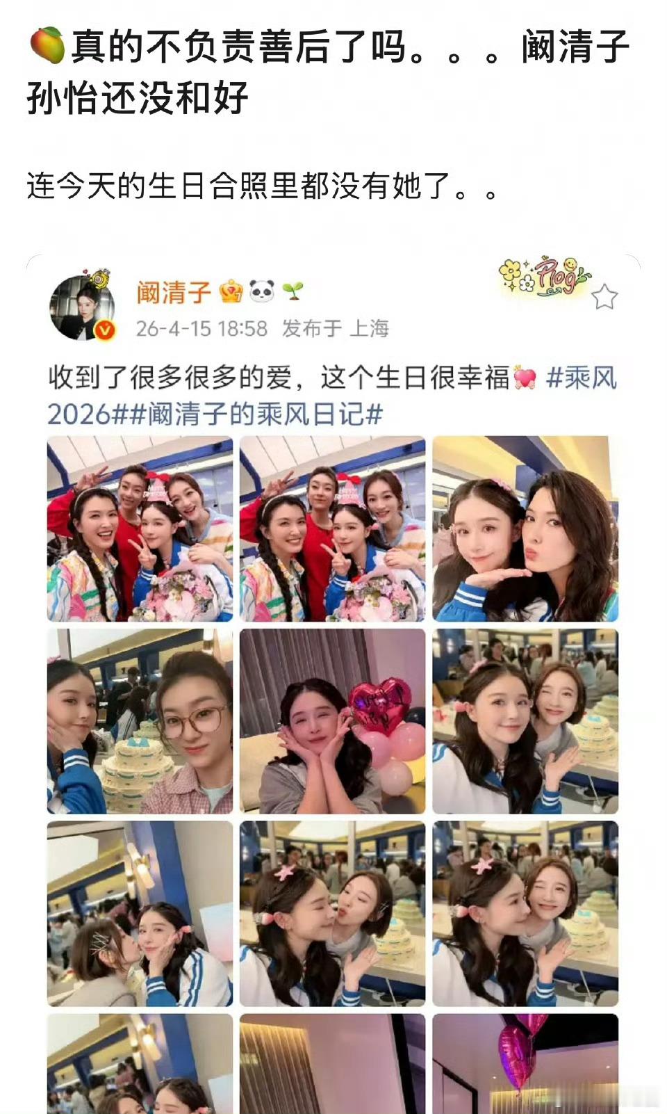 阚清子孙怡还没和好吗谁懂啊!阚清子38岁生日合影里还是没有孙怡