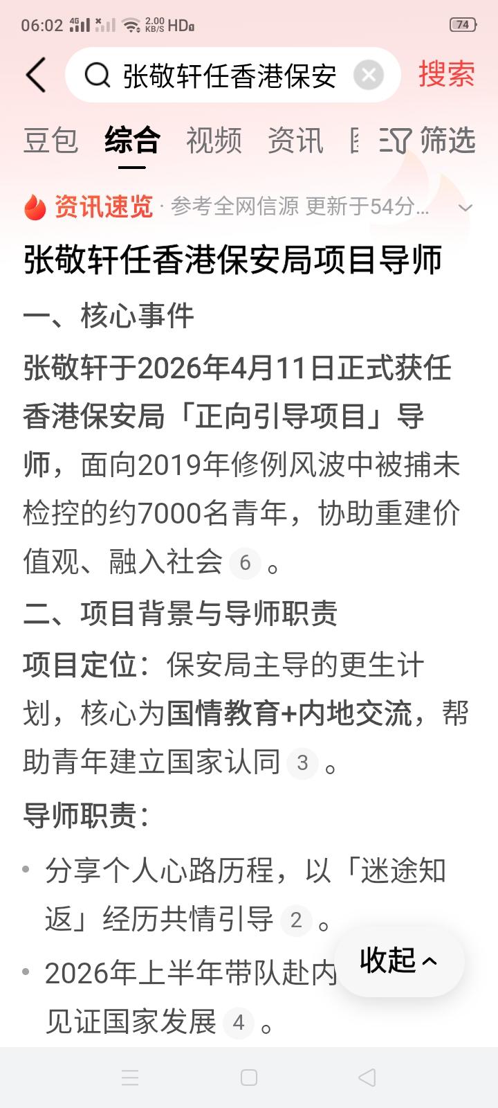 很多人反对香港安保局聘任张敬轩为“正向引导项目”导师,很多网友甚至抵制张敬轩来大陆。张敬轩以前曾否认说过支持“港独”的言论,现在亲自出面道歉,说明他承认以前有过不当言论,也与“港独”分子有交往,现在正式与“港独”、与过去作切割,这对他而言是一生之内必须要做的事,因为他的根还在内地,他的父母亲人还都在内地,他別无选择,现在他能以类似于“污点证人”的形式“现身说法”,带领那些“修例风波”中被捕但未被检控的人“重建价值观”,“重新容入社会”。