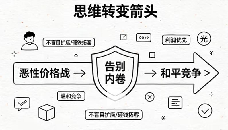 商业不是战争,没有终点,也没有敌人,只有客户。与激进型、妥协型企业的“好战”不同,做和平竞争者——不打无意义的价格战,不抢不赚钱的份额,有选择地战斗,主动让出低效份额,聚焦高利润领域。