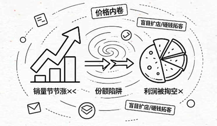 在成熟市场中,产品同质化严重、成本潜力挖尽、创新周期漫长,盲目追逐份额只会陷入恶性循环:降价抢份额→利润被侵蚀→被迫继续降价→行业陷入价格战,最终所有企业都沦为“利润荒原”。