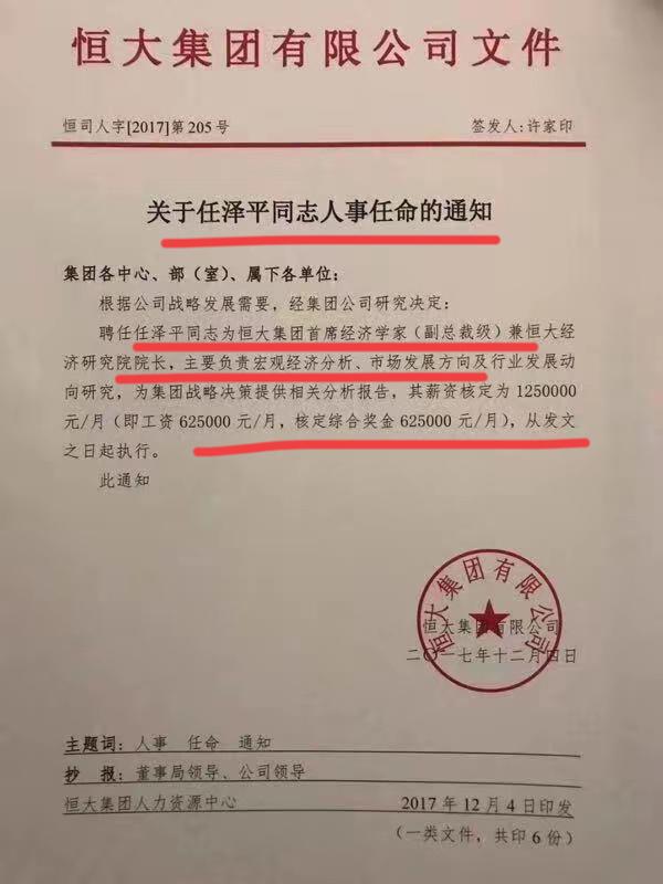任博士曾经是恒大副总裁级别的首席经济学家;