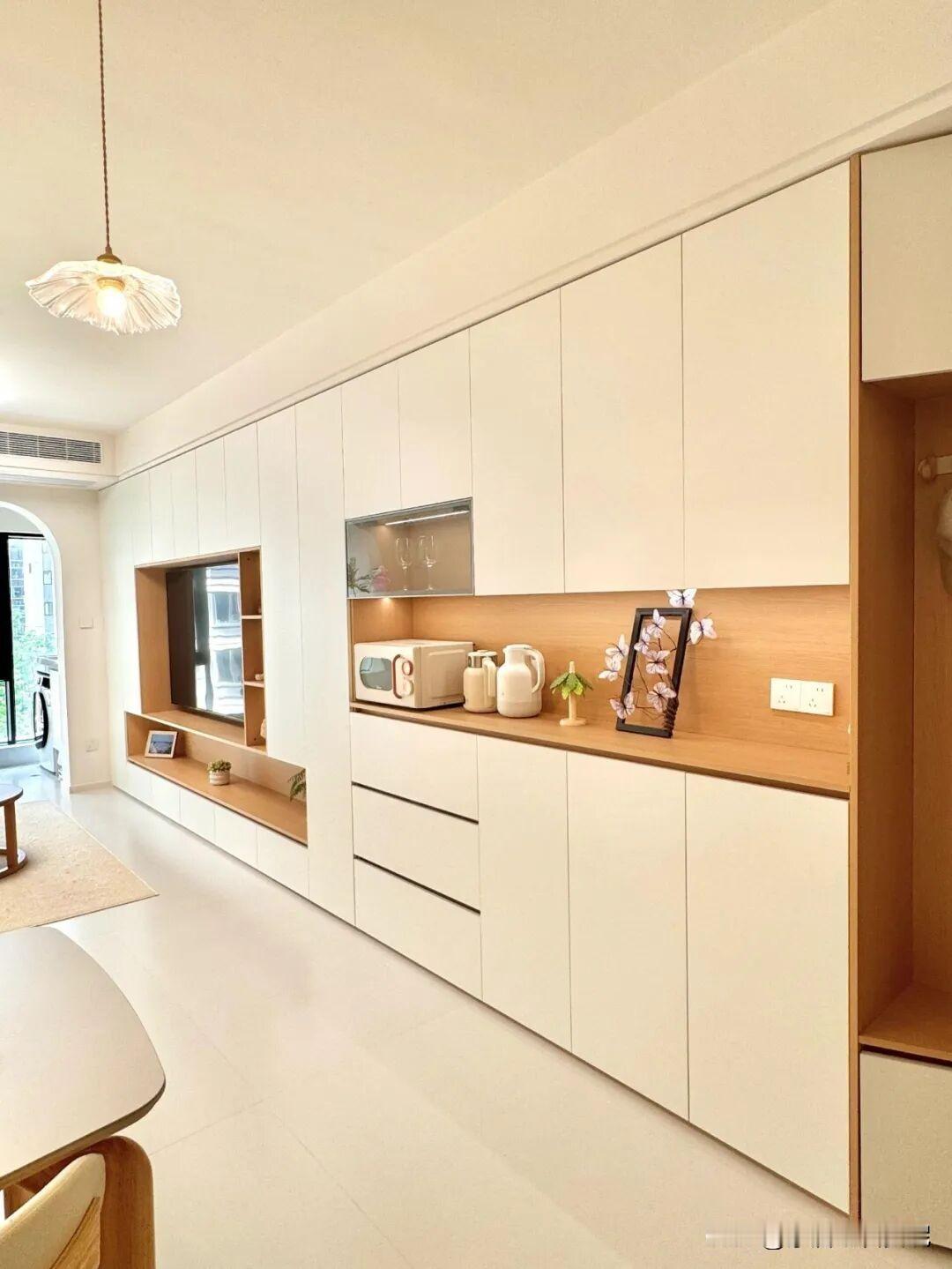 花上万做的背景墙,住进去电视一挂,遮掉一半。不如大白墙+投影,或者整面储物柜,省钱又实用。📺