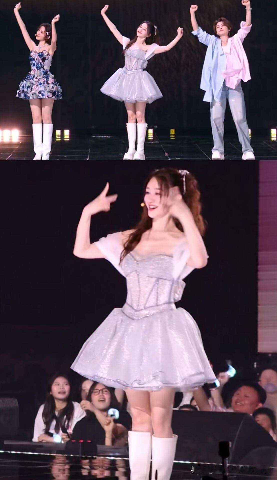 快五十岁的人,穿上蓬蓬裙扎起双马尾,唱起甜歌软乎乎的,居然一点不违和。站在台上安安静静唱歌的样子,像极了小时候八音盒里旋转的芭蕾小人,温柔又梦幻。