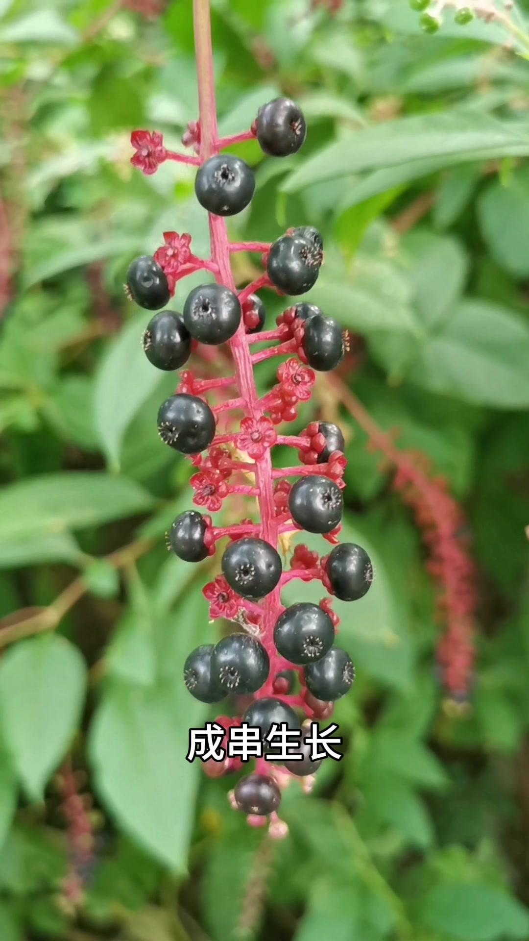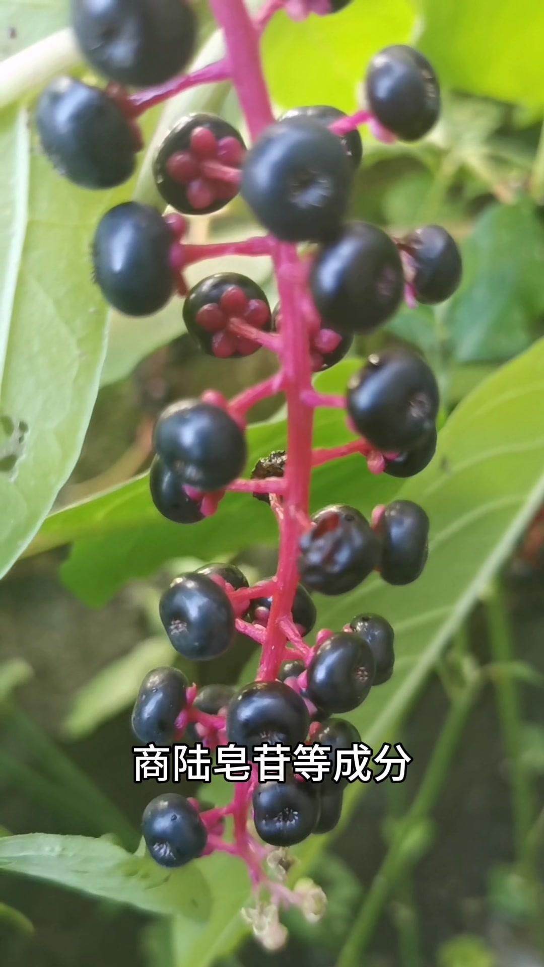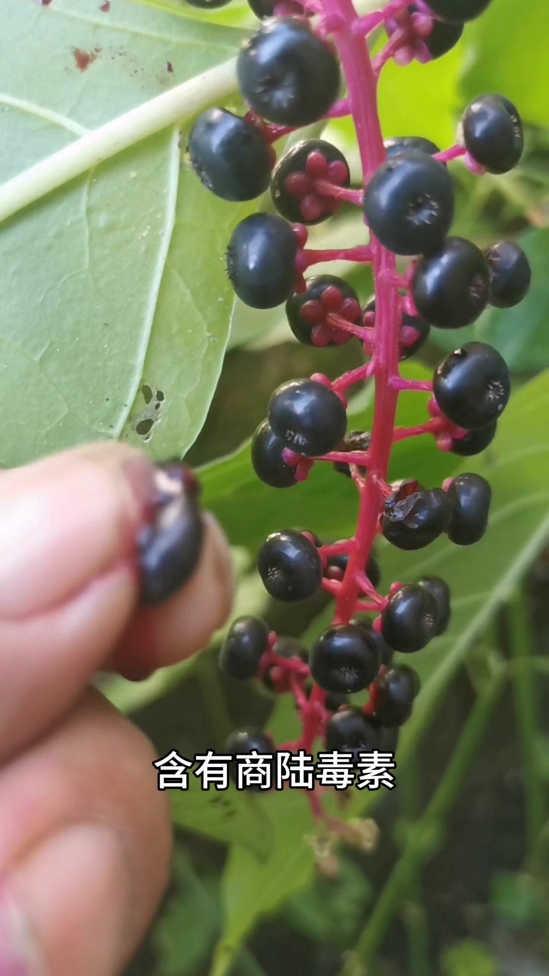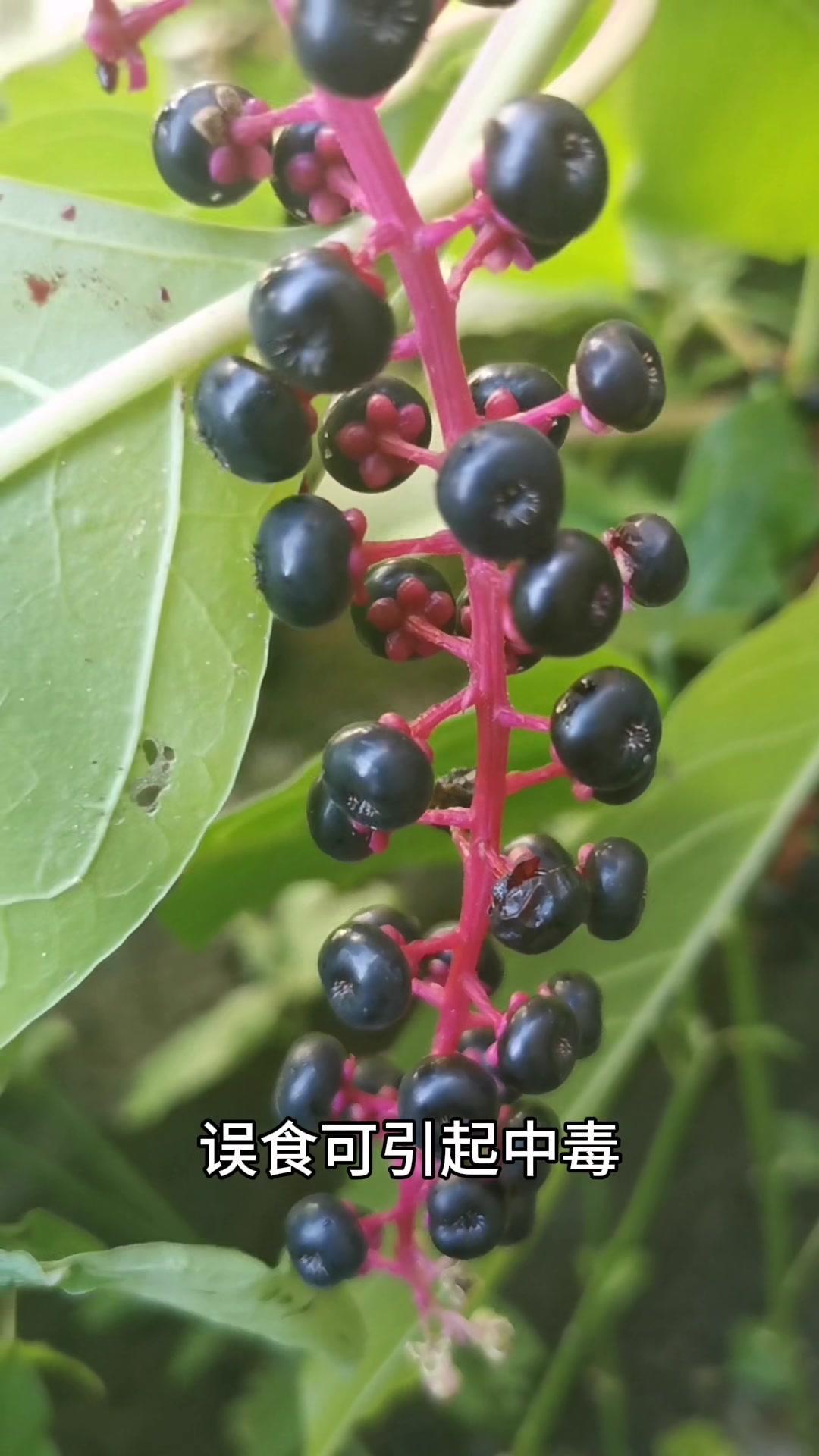 5️⃣**垂序商陆**:果实紫黑色成串生长,全株有毒,根部和果实毒性最强,含商陆毒素、皂苷,误食会中毒。
