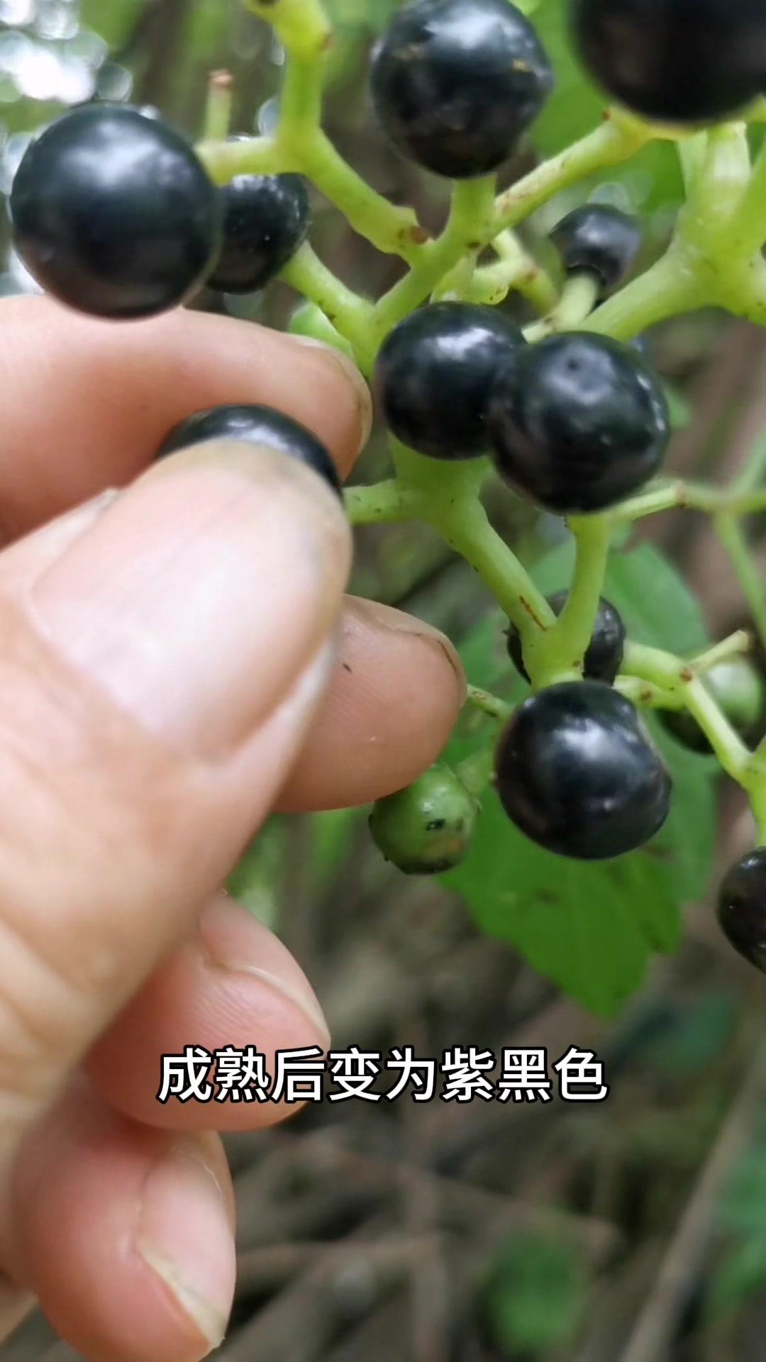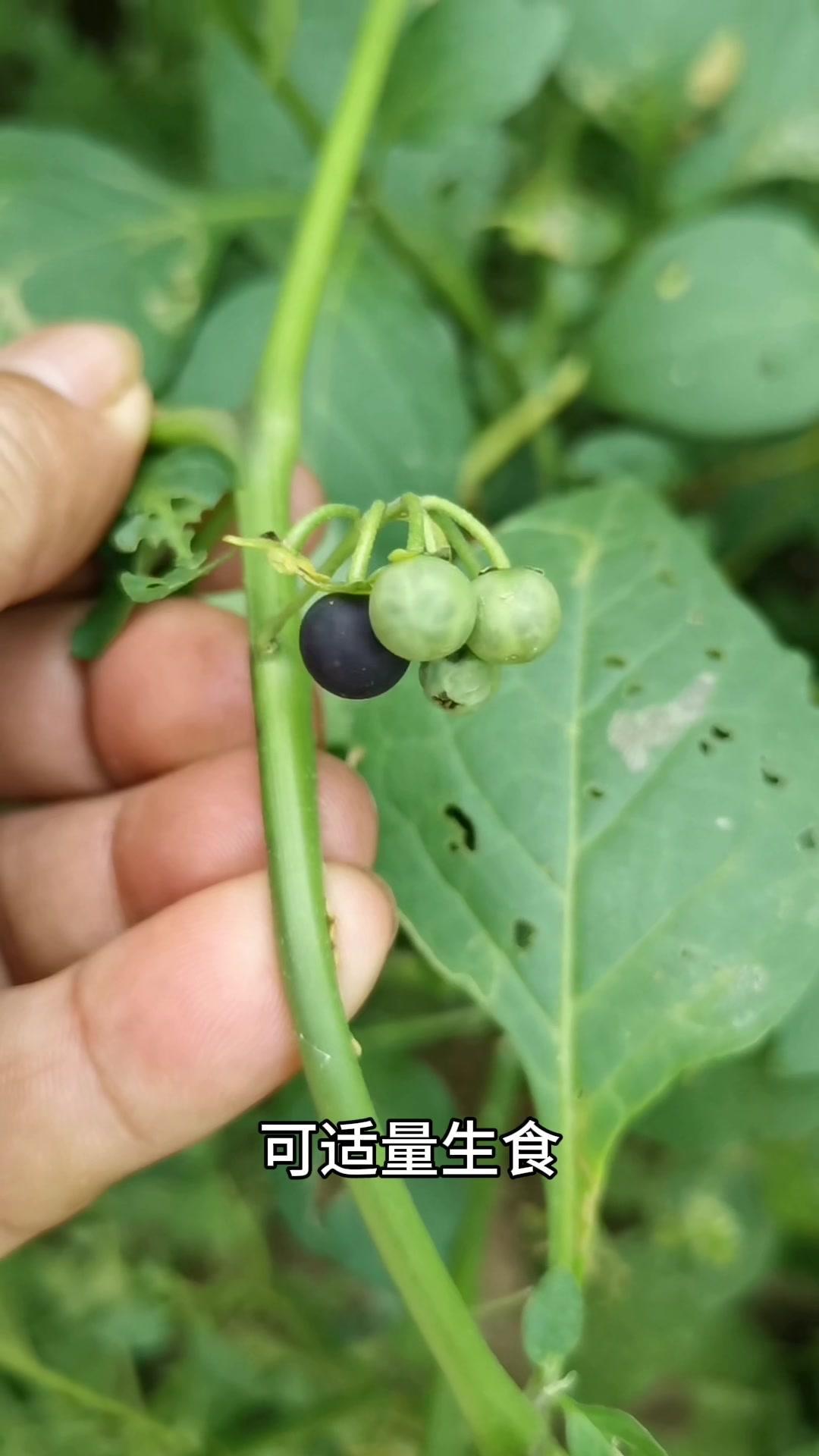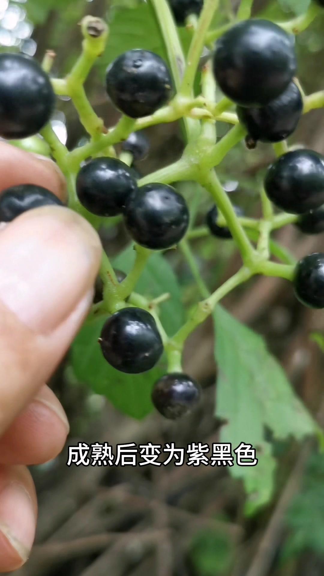 3️⃣**龙葵果**:茄科一年生草本,未成熟是绿色,含龙葵碱,过量吃会肠胃不适,成熟后变黑色,可少量生食,别贪多!