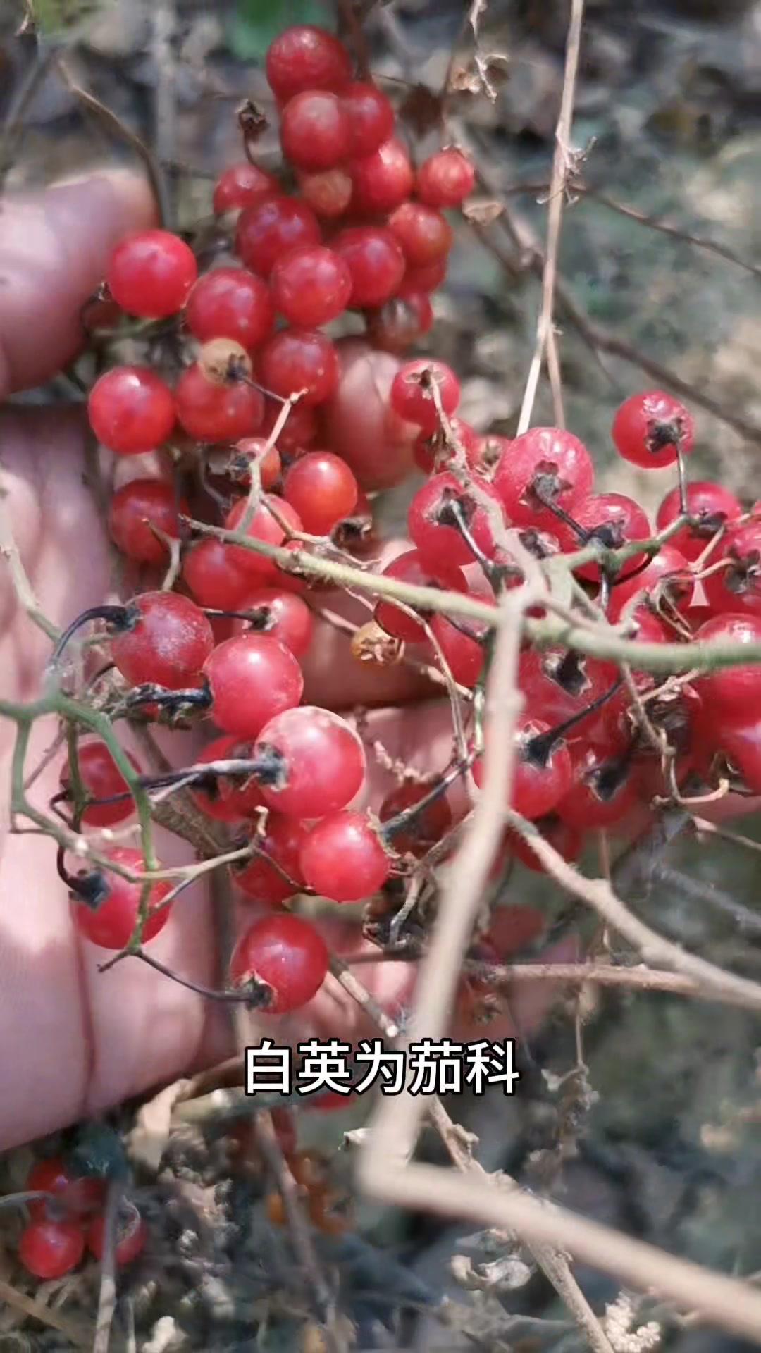 2️⃣**白英果实**:茄科多年生草质藤本,成熟果实红色,浆果球状,含生物碱成分,只能谨慎食用,绝对不能直接生食。