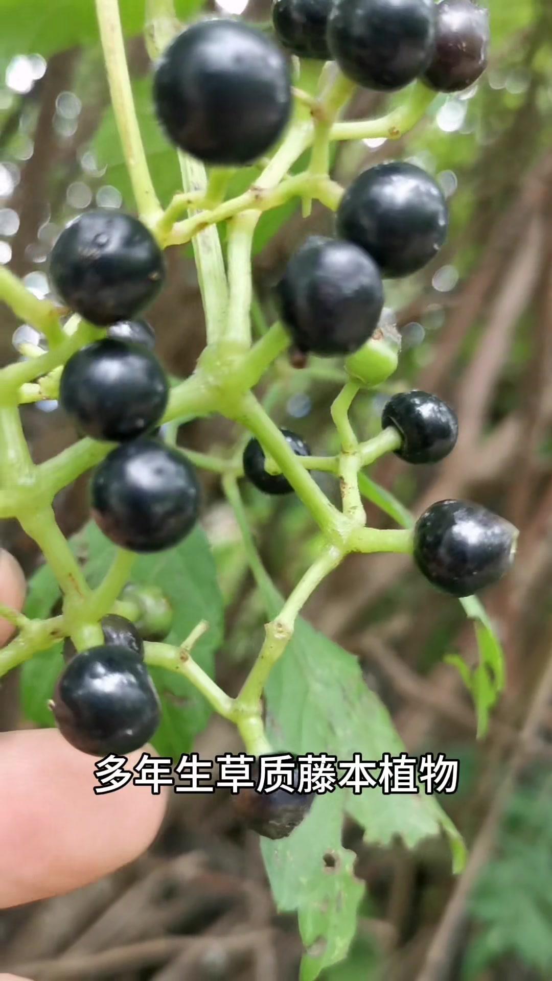 4️⃣**乌蔹莓**:葡萄科多年生草质藤本,果实球形,未成熟绿色,成熟后紫黑色,全株有毒,不可食用,有小毒。
