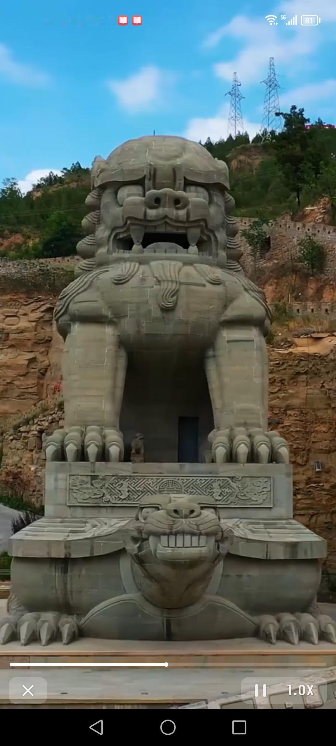 中国最大的石狮在陕西绥德,高达19.5米,就在无定河龙凤桥东侧的山谷两侧,那场面老壮观了。这石狮以唐宋风格为主,还融入了明清特色,基座是石龟,狮子口高2米多、宽3米多,能轻松容纳十多个人。