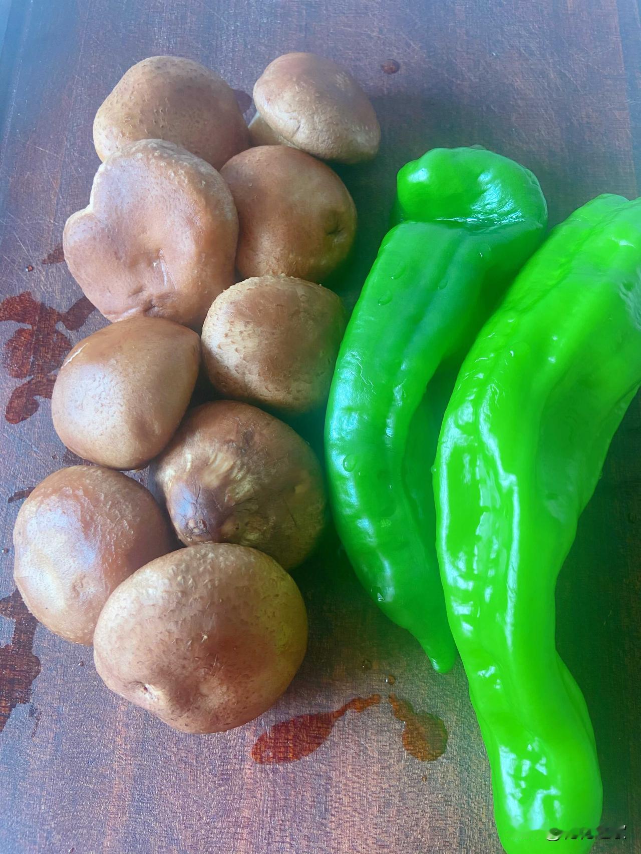 ——— 莴笋肉片 + 青椒炒香菇 + 鹅蛋 ———