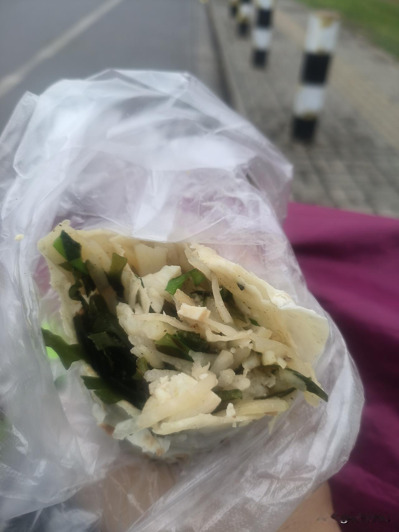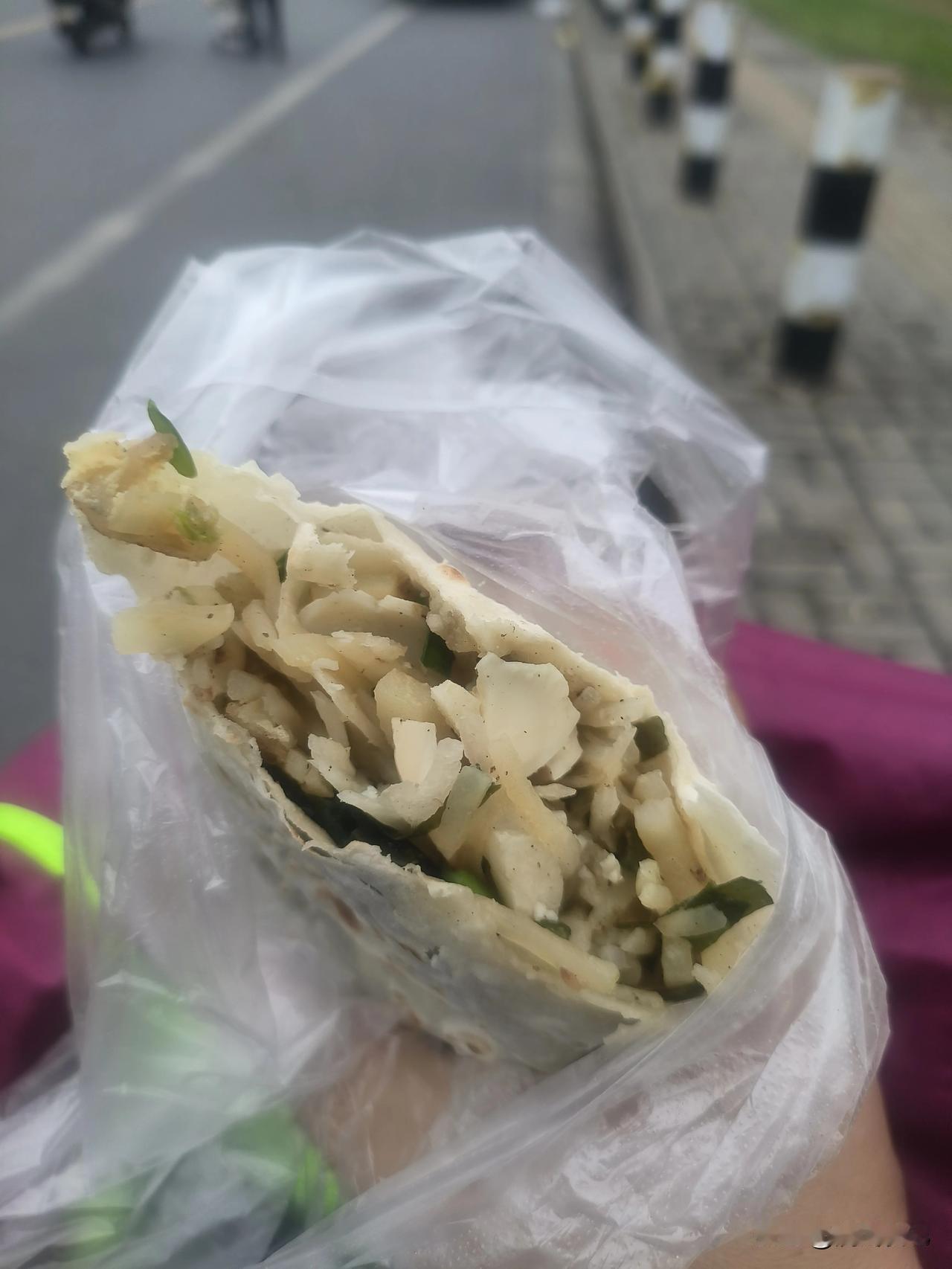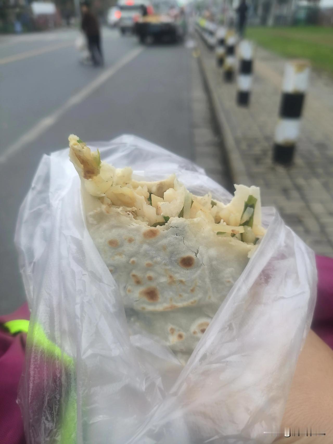 今天路过城东蓬朗,居然发现有卖烙馍的。好家伙,这可是个手艺活。手擀的烙馍,现烙出来的很好吃。但在这边就只能买到机器做的,吃起来黏不拉几的。