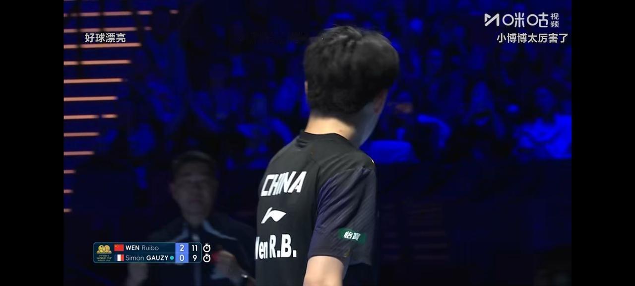 澳门世界杯温瑞博3:0战胜法国选手西蒙高次,以小组第一的身份进入16强,三局比分分别是11:8 14:12