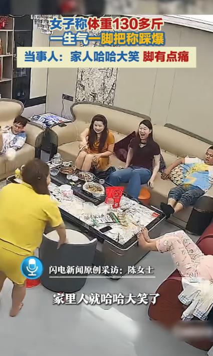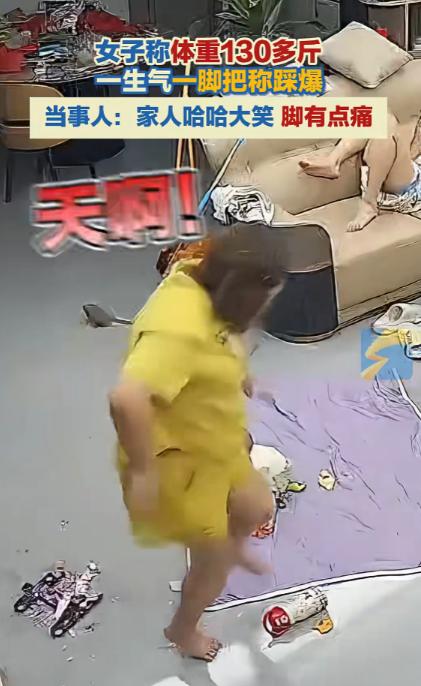 (信息来源:闪电新闻《广东普宁,女子称体重130多斤,一生气一脚一把称踩爆。当事人:家人哈哈大笑,脚有点痛》)