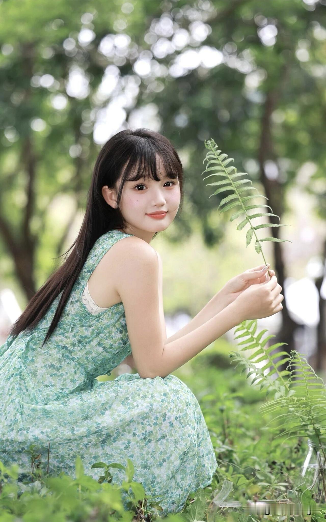 绿衣少女倚芳草,笑语盈盈处。