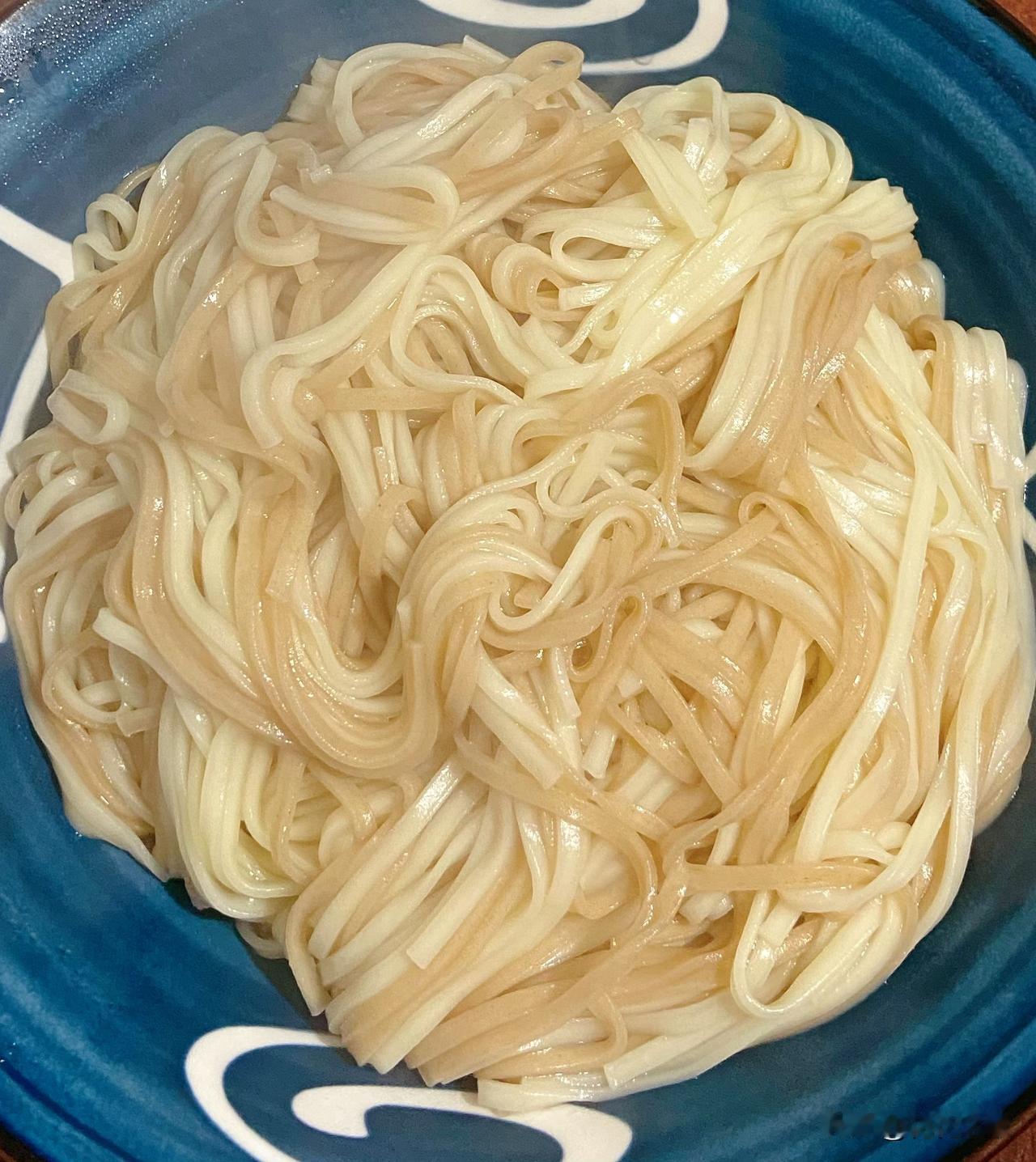 煮点双色面条,放上炒好的酸菜,放点盐和老抽,搅拌均匀的酸菜面,香,香,香。