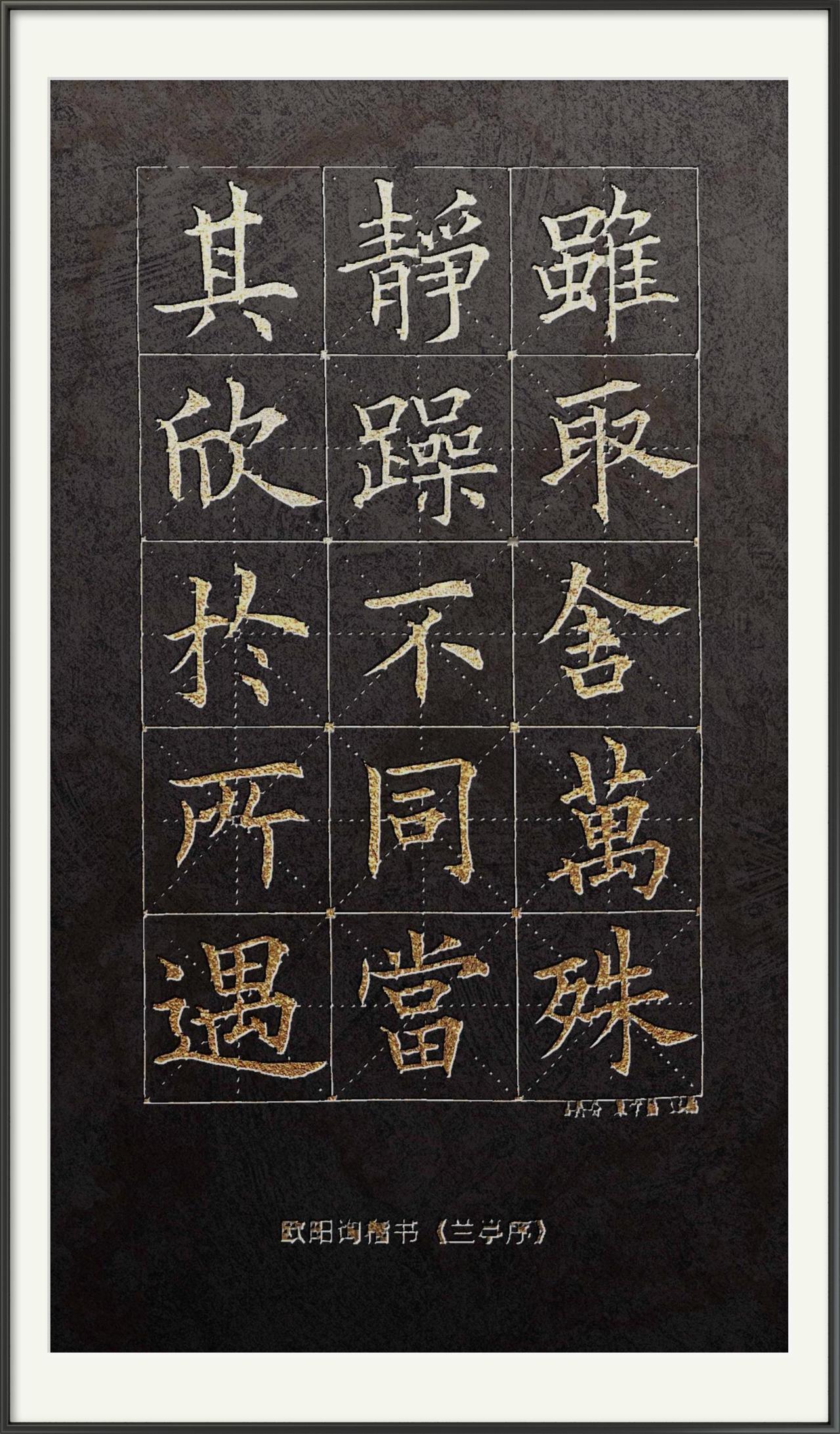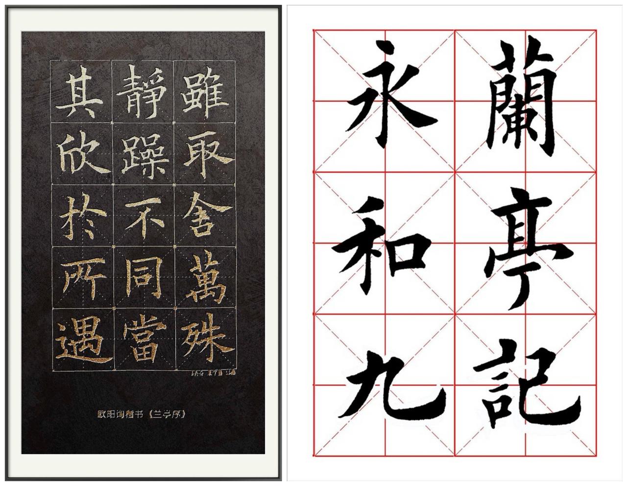 青溪书法版本:更贴近欧阳询欧楷的本来神韵,既保留了欧楷严谨规整的法度,笔画瘦劲有力,结构紧凑精巧,将原碑险中求稳的特点体现到位;同时兼顾了作品的气韵表达,把行书《兰亭序》的雅致灵动和楷书的严谨做了巧妙融合,笔墨细节更丰富,比田英章版本更有古雅韵味与书写生气。