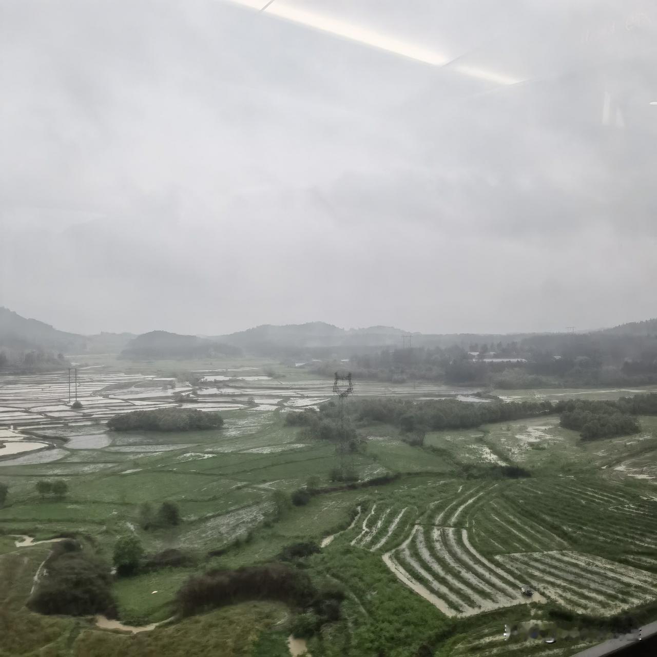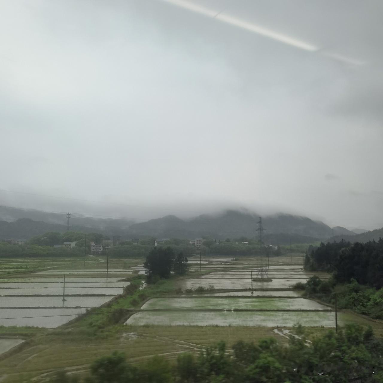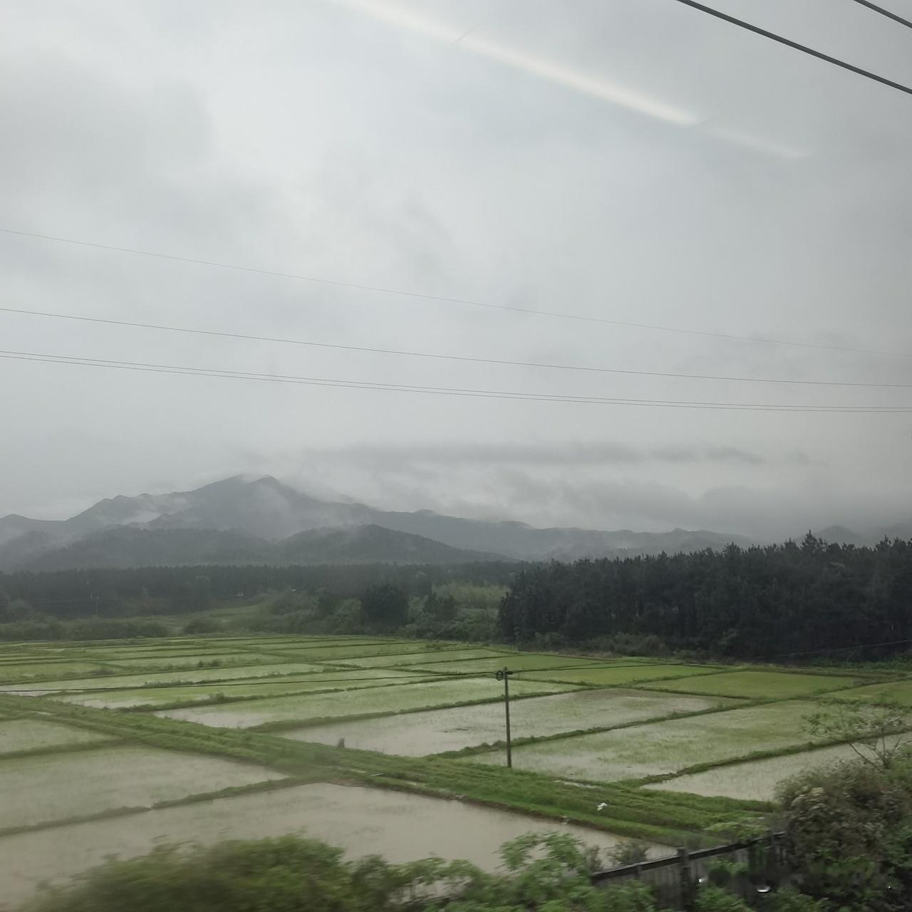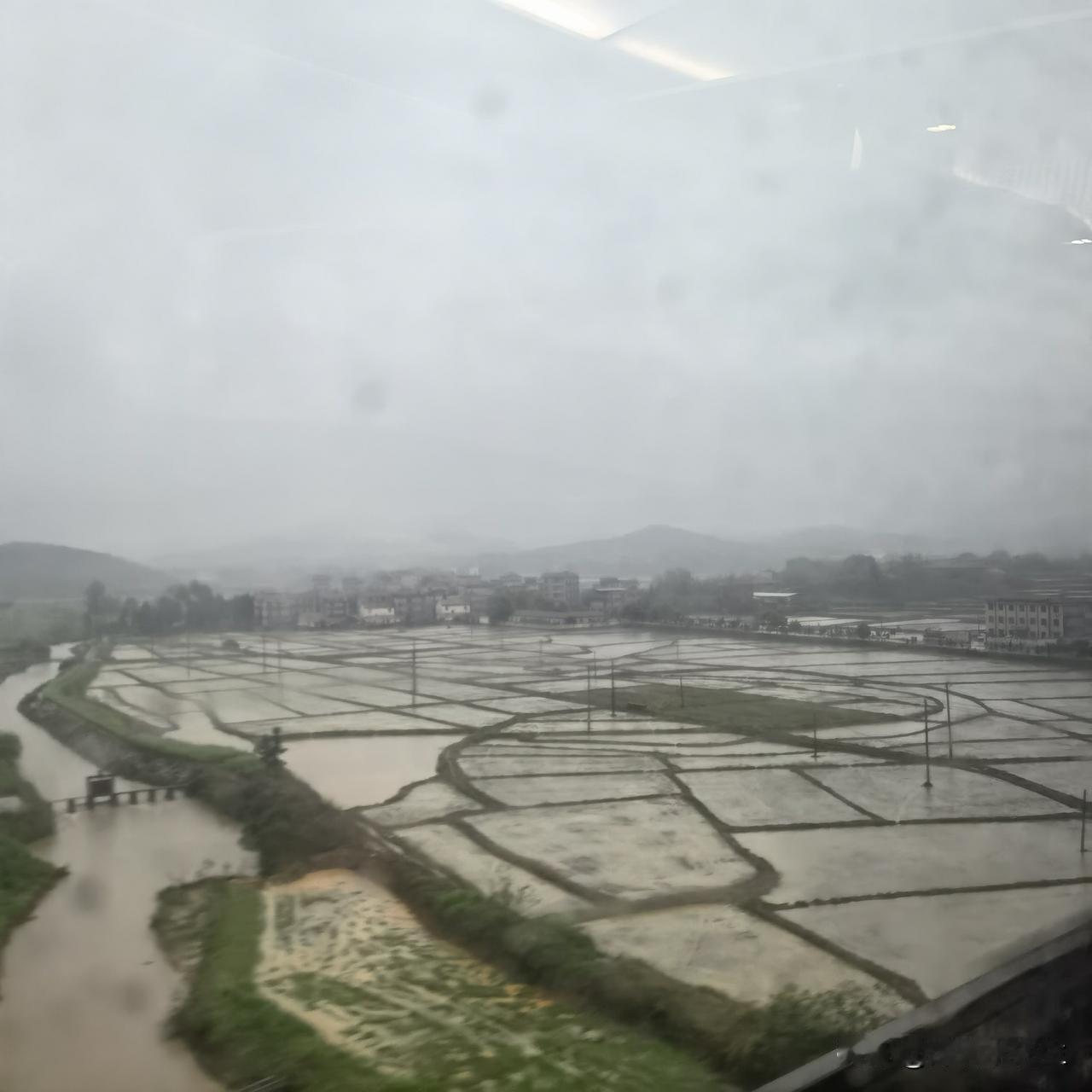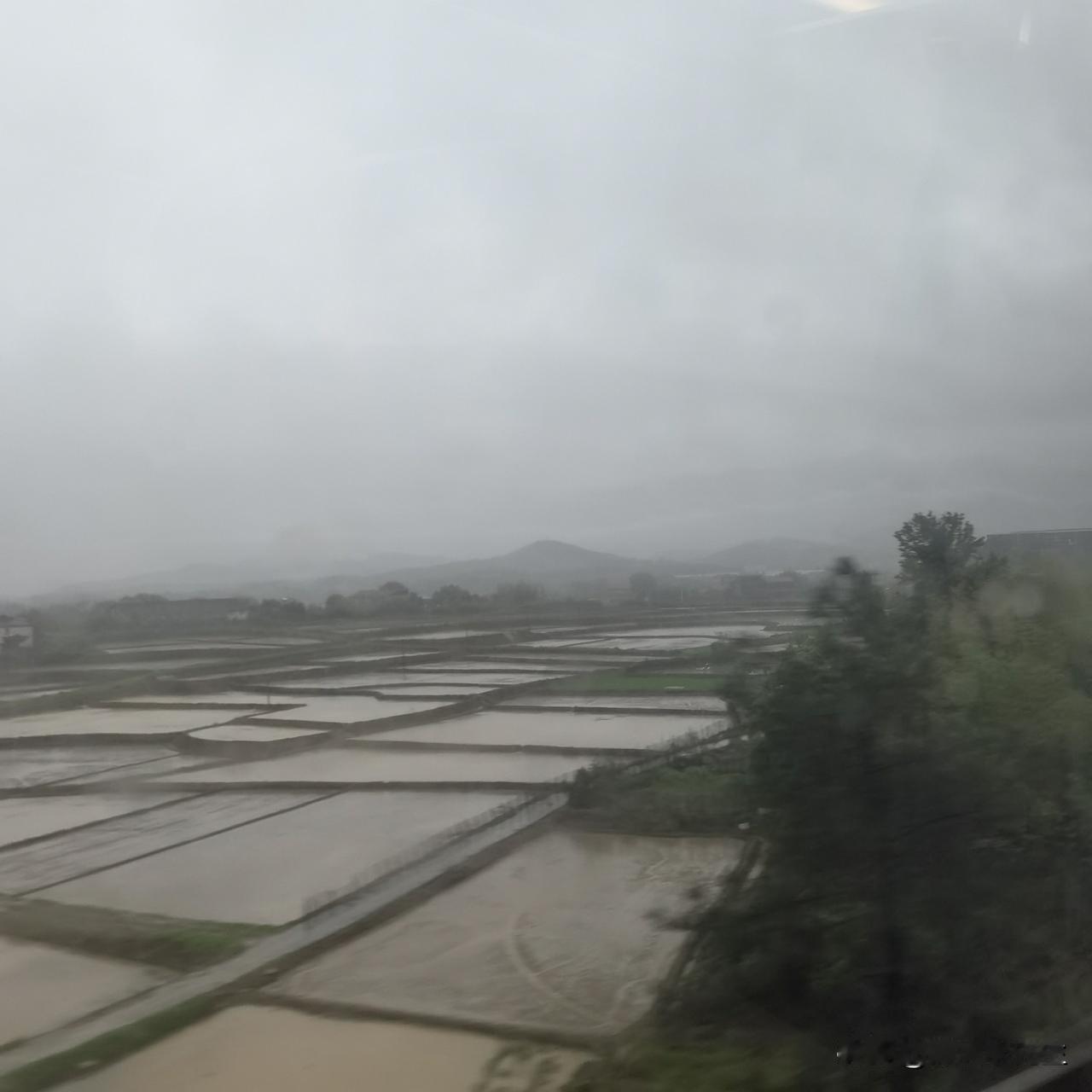 早上吃完母亲煮的鸡蛋,还有家乡风味的炒粉,开车回来同学工厂,没多久,天色就黯淡下来,再一会,直接就昏天暗地,暴风雨来临之前的样子。等我们出门去高铁站时,已经哗啦啦下起来了,白昼已经提前变成了夜晚,还好,车子正常到来,上来安顿好,火车路过的村庄,一派田园风光!