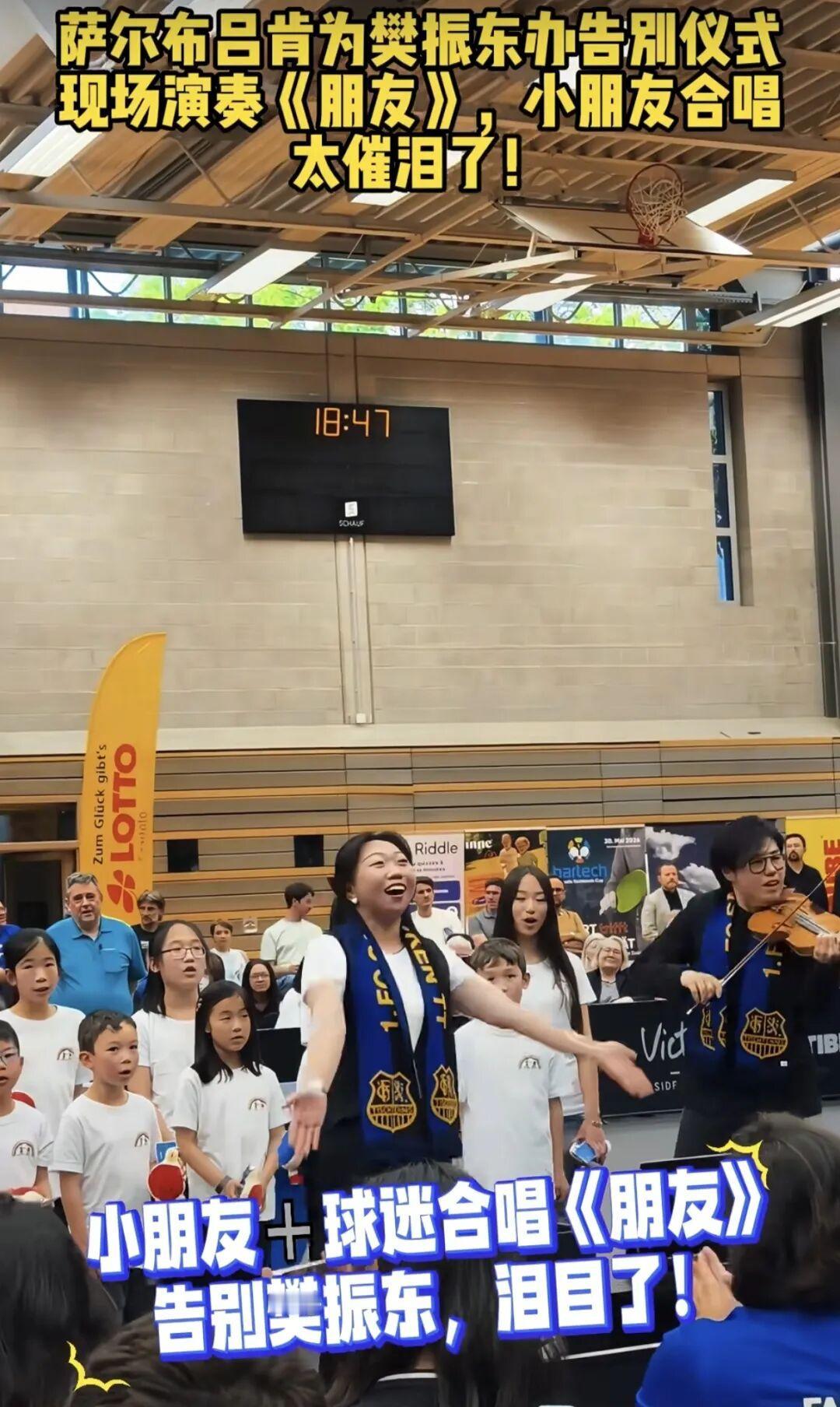 樊振东德甲之旅圆满收官,专属告别仪式温情满满,令人动容。赛场帷幕落下后,现场为他精心安排了暖心的送别环节。一群小朋友轻声合唱《朋友》,那干净稚嫩的歌声悠悠响起,瞬间营造出浓厚的氛围,既温柔又直击人心。