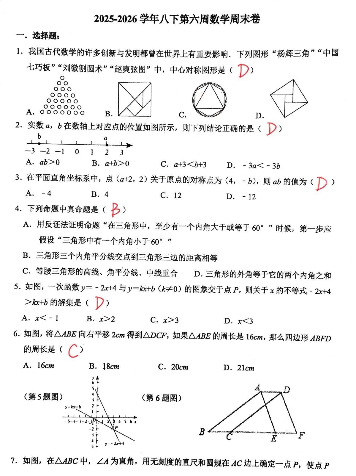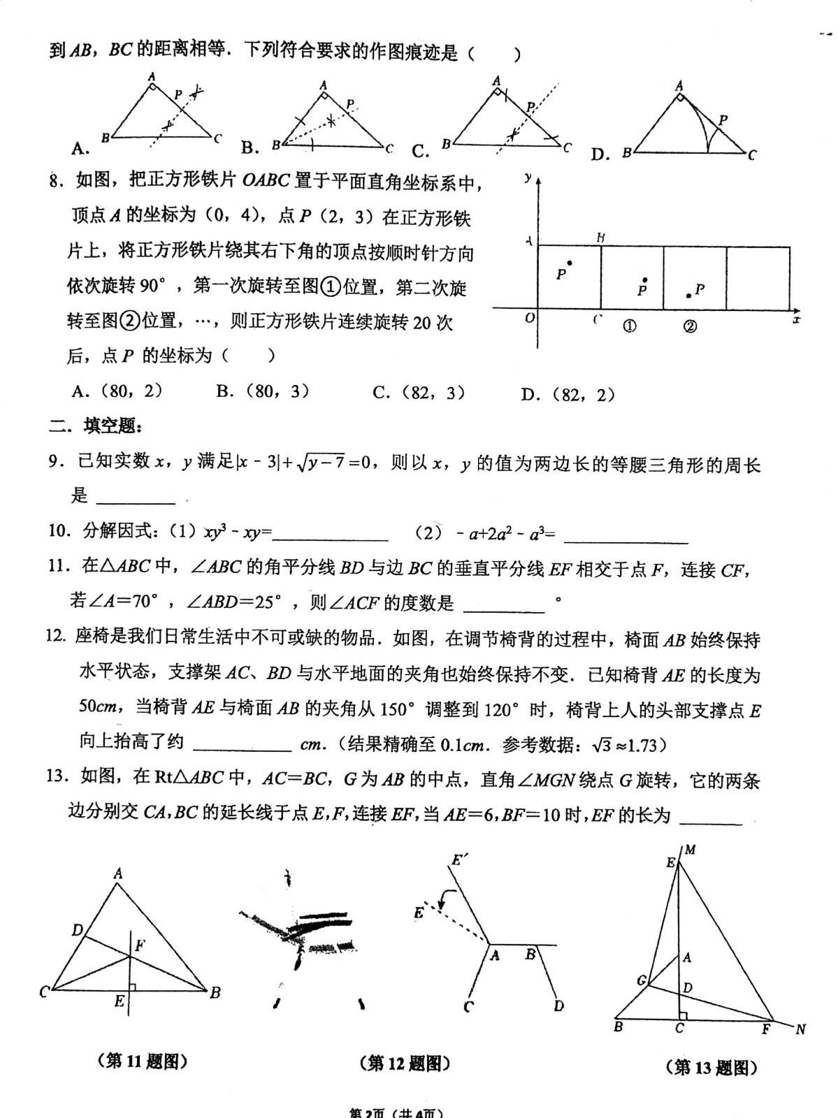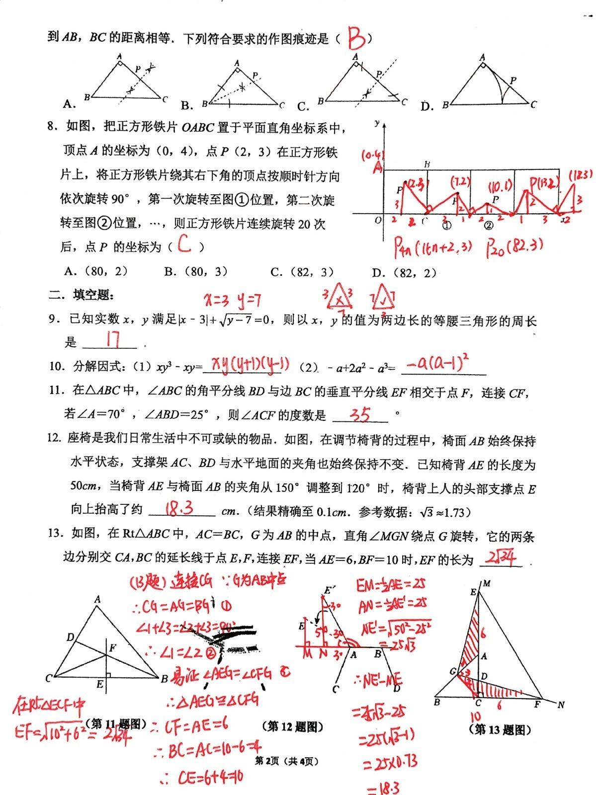 分享一套初二数学期中考试复习卷,主要考点包括三角形证明,不等式不等式组,图形的平移与旋转,因式分解等。初中数学 教育 初中几何必刷题