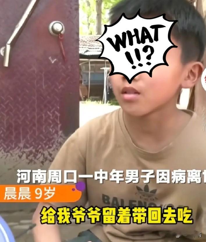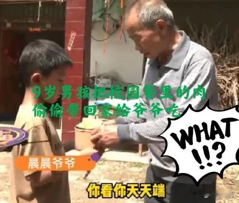 河南周口一个9岁男孩儿,把学校园餐里他舍不得吃的肉,藏在书包里,偷偷带回家,准备留给爷爷吃……