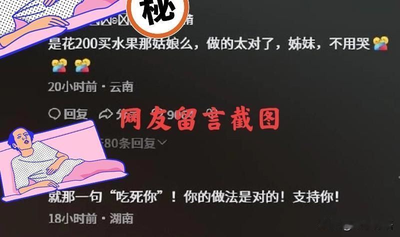女子很委屈,解释水果是用自己攒的零花钱买的,没花家里一分钱。