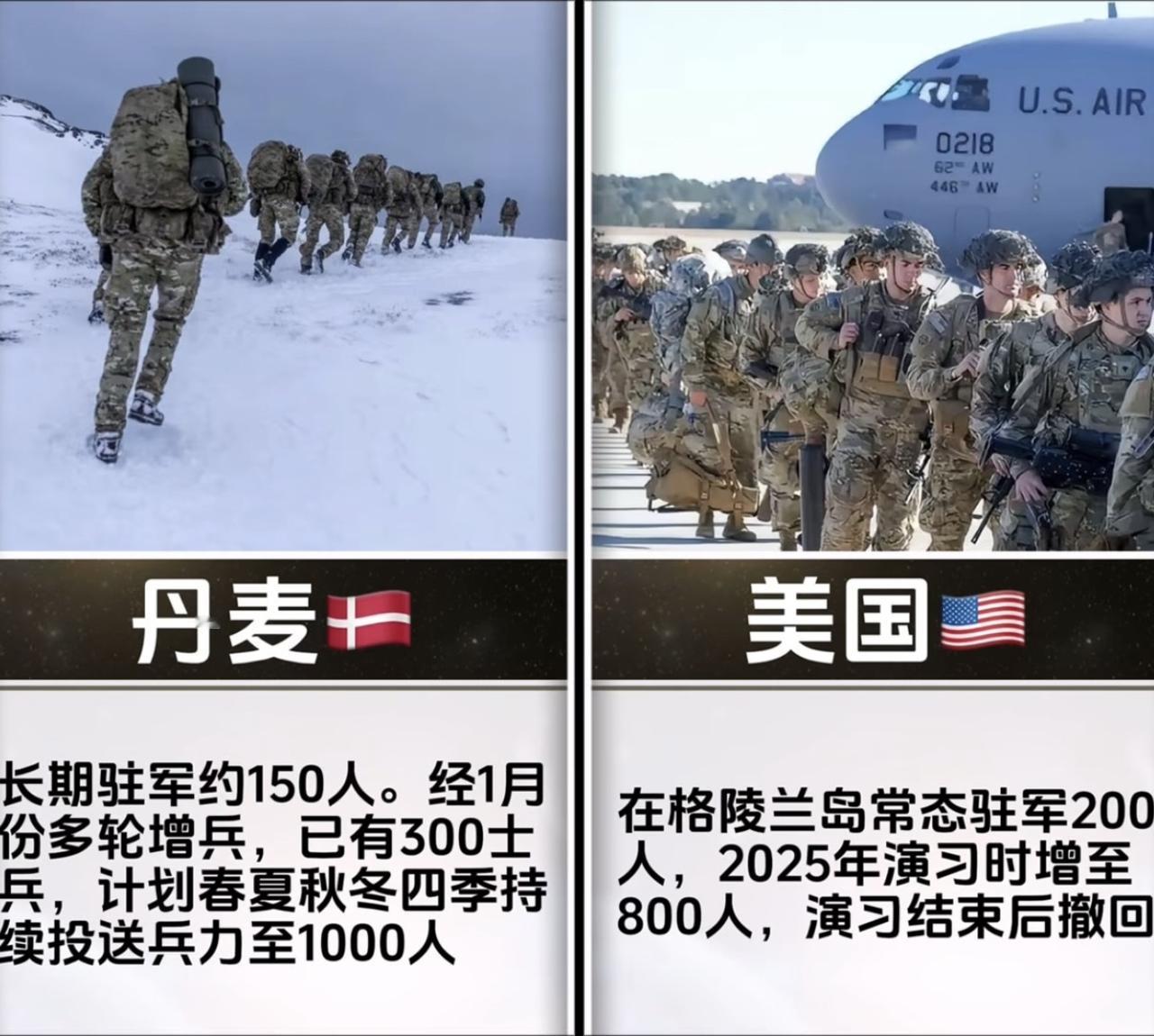 在格陵兰岛常年蹲守,演习时增兵到800,演习一结束,“嗖”的一下全撤了,主打一个来去如风。