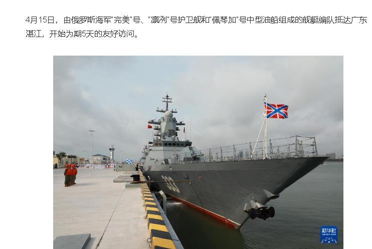 4月15日,湛江军港。俄罗斯“完美”号、“凛冽”号护卫舰缓缓靠岸,开始为期5天的友好访问。码头上《喀秋莎》飘扬,场面好不热闹。