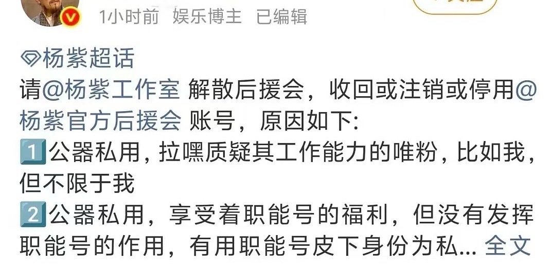 绕了这么大一圈子,杨紫后援会终于有正当理由集体跑路了,蓝v下场发表对无关女明星的