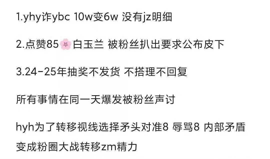 明明一开始就是粉圈内讧,大粉借着翻车妆造清算后援会的种种失职行为,粉圈情绪集中爆发(粉圈内部矛盾多并不是一个好的信号,杨紫这些年光播剧不固粉,体系早已不健康)。又被曝出曾关注迪丽热巴后援会,试图转移视线,内斯变外斯,上了热搜后官号又情绪化下场,到最后以恶意重伤无辜艺人、后援会解散收尾,真是蠢到家,坏到骨子里了,巴紫这些年的虐恋情深,也可以说是杨紫家的单方面深柜,自己跑粉然后给别家无痛虐粉……杨紫后援会集体辞职解散重组