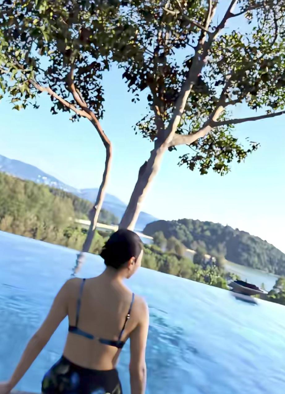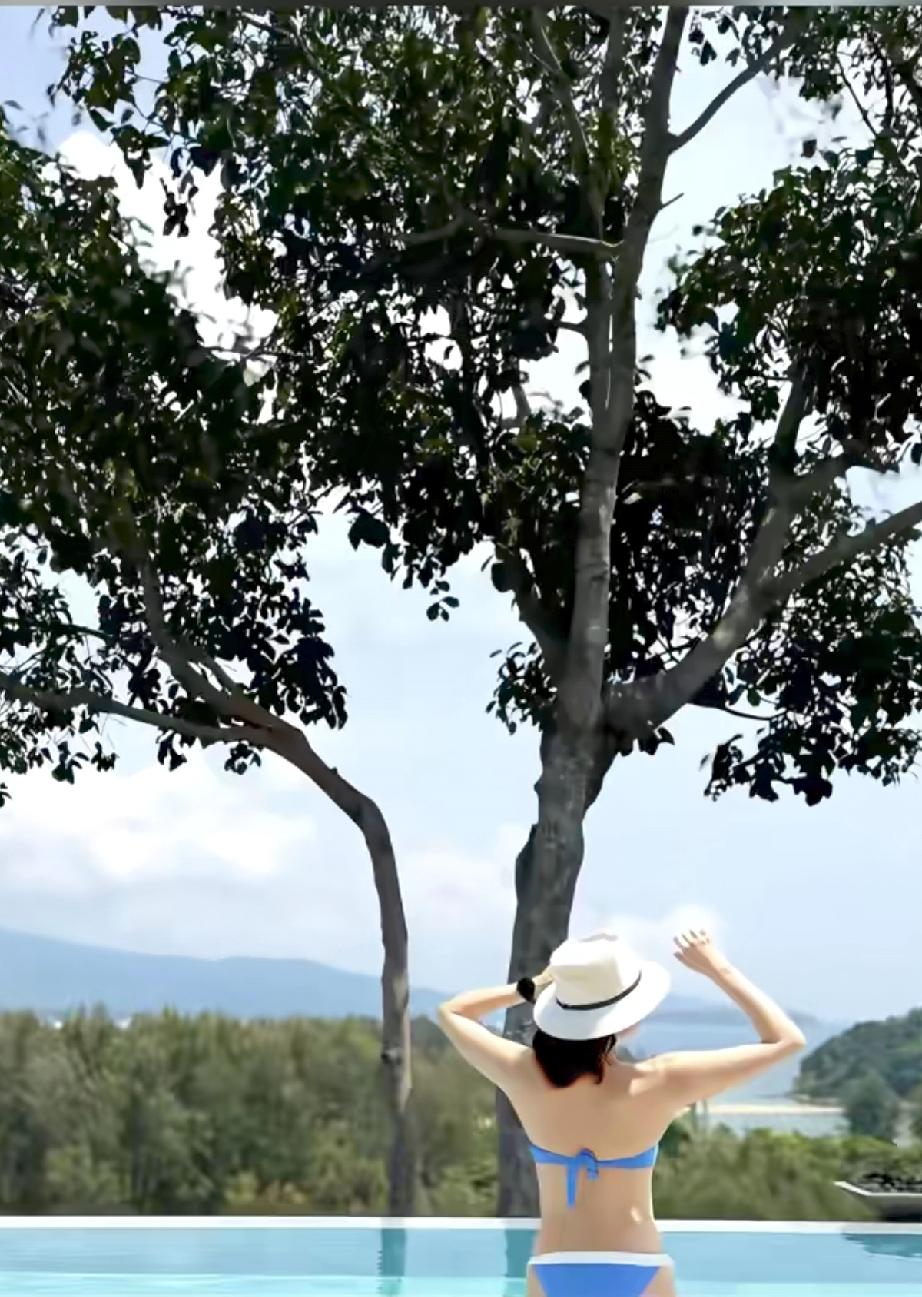 黎姿的泳装照腰胯有点宽了,但肌肉结实,一看就是经常运动的,她的状态整体上挺好的,远远超过普通人让人羡慕。