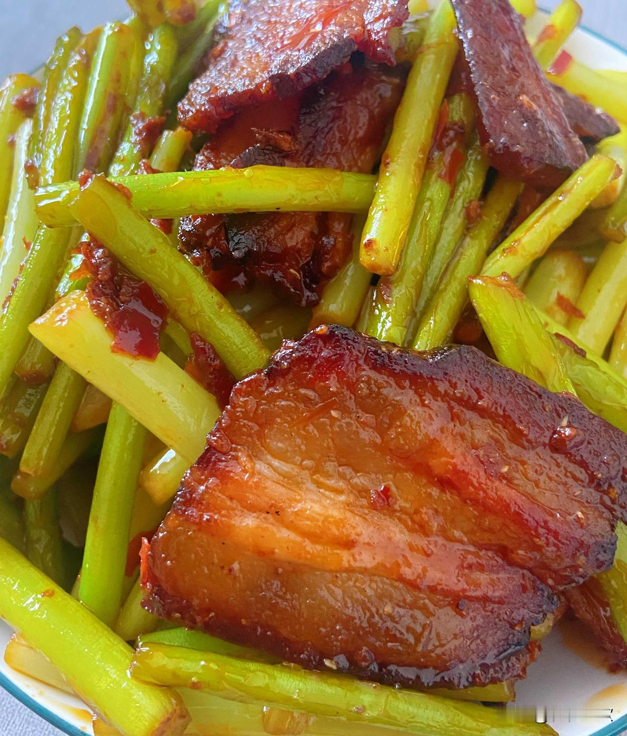 腊肉搭配蒜苔就是经典的下饭菜:蒜苔炒腊肉;鹅蛋搭配青椒就是春天的美味菜:青椒炒蛋。