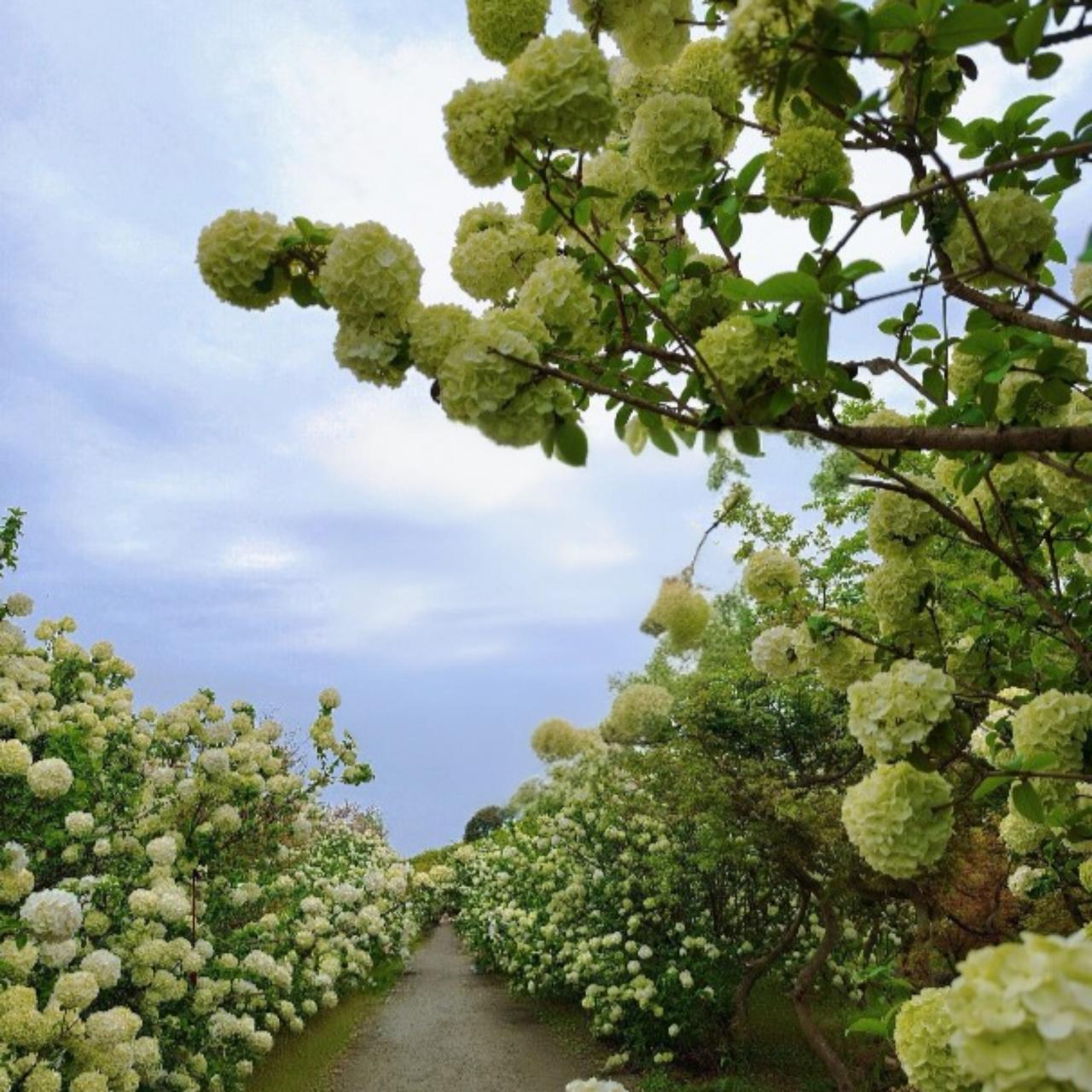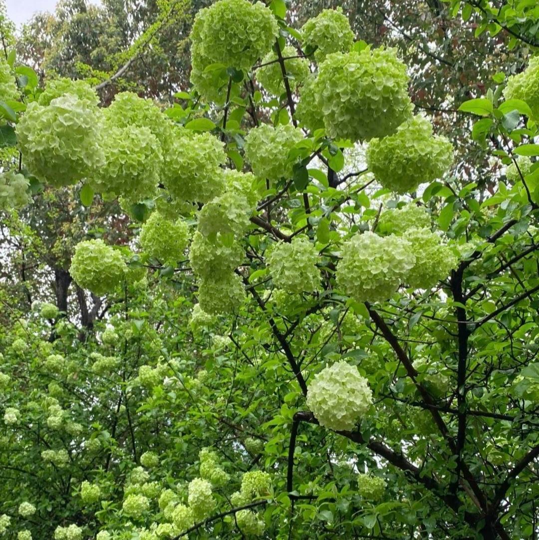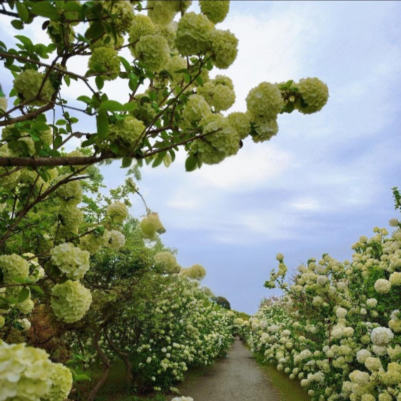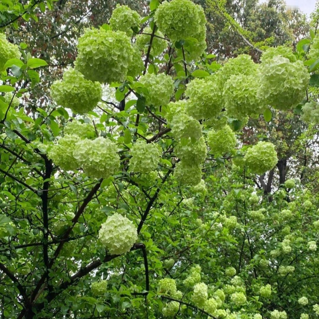 赏花观景:木绣球花 看图说话 翠叶琼枝玉蕊娇, 梦幻仙姿掛林梢。 淡雅芬芳自逸神
