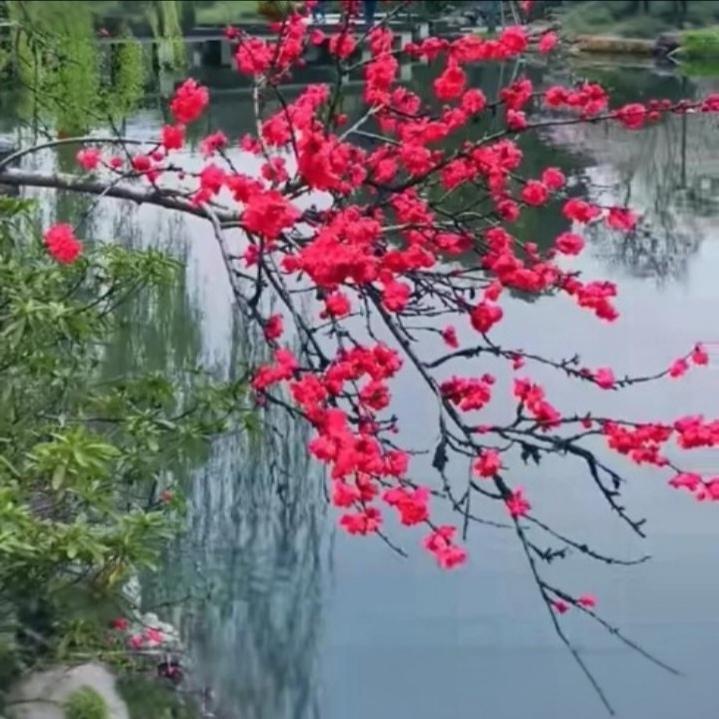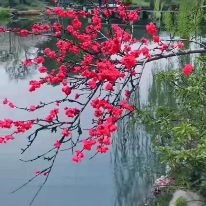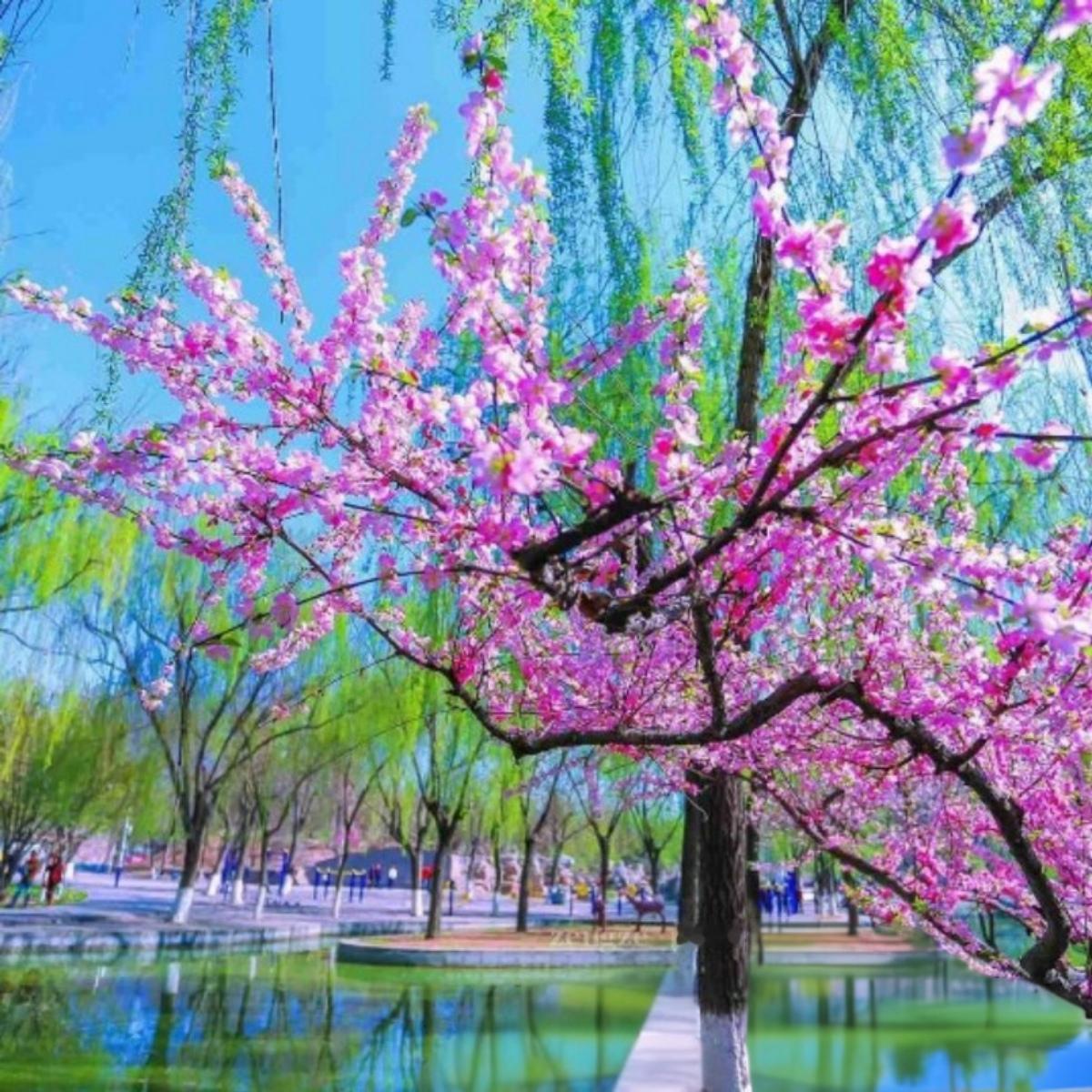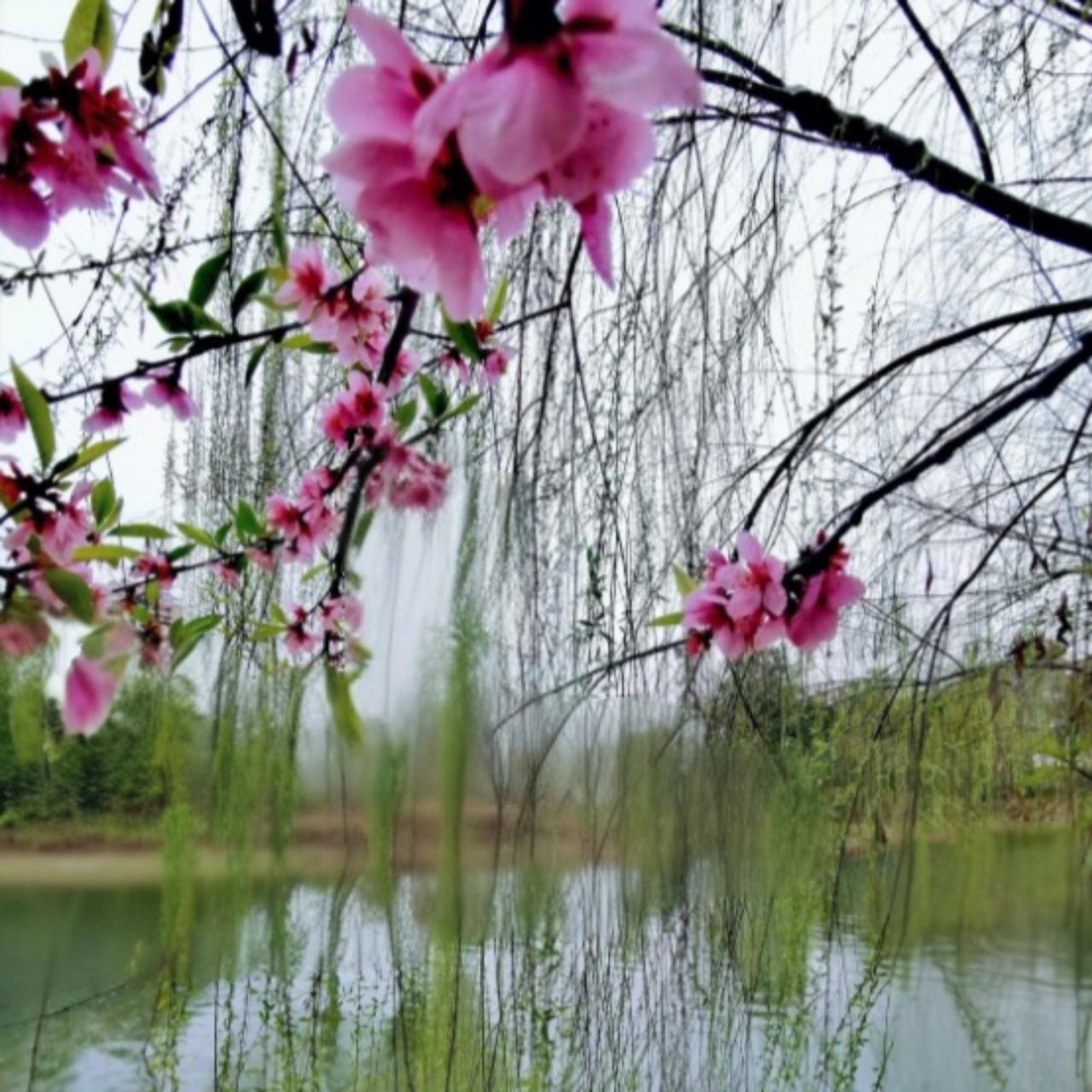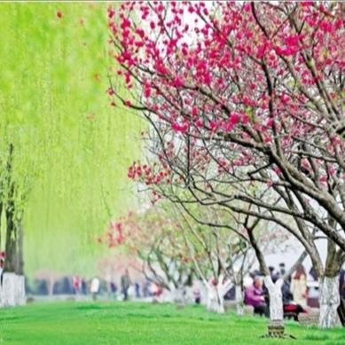 观花赏景:桃红柳绿 春风吹绿岸边柳, 碧水清波映桃红。 繁花似锦春景美, 万物复