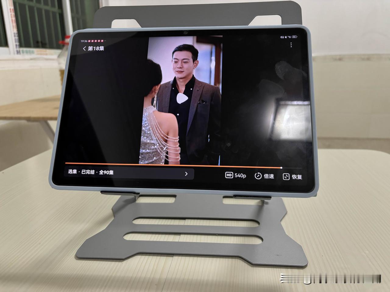 他不想退,现在把平板放在支架上追剧。