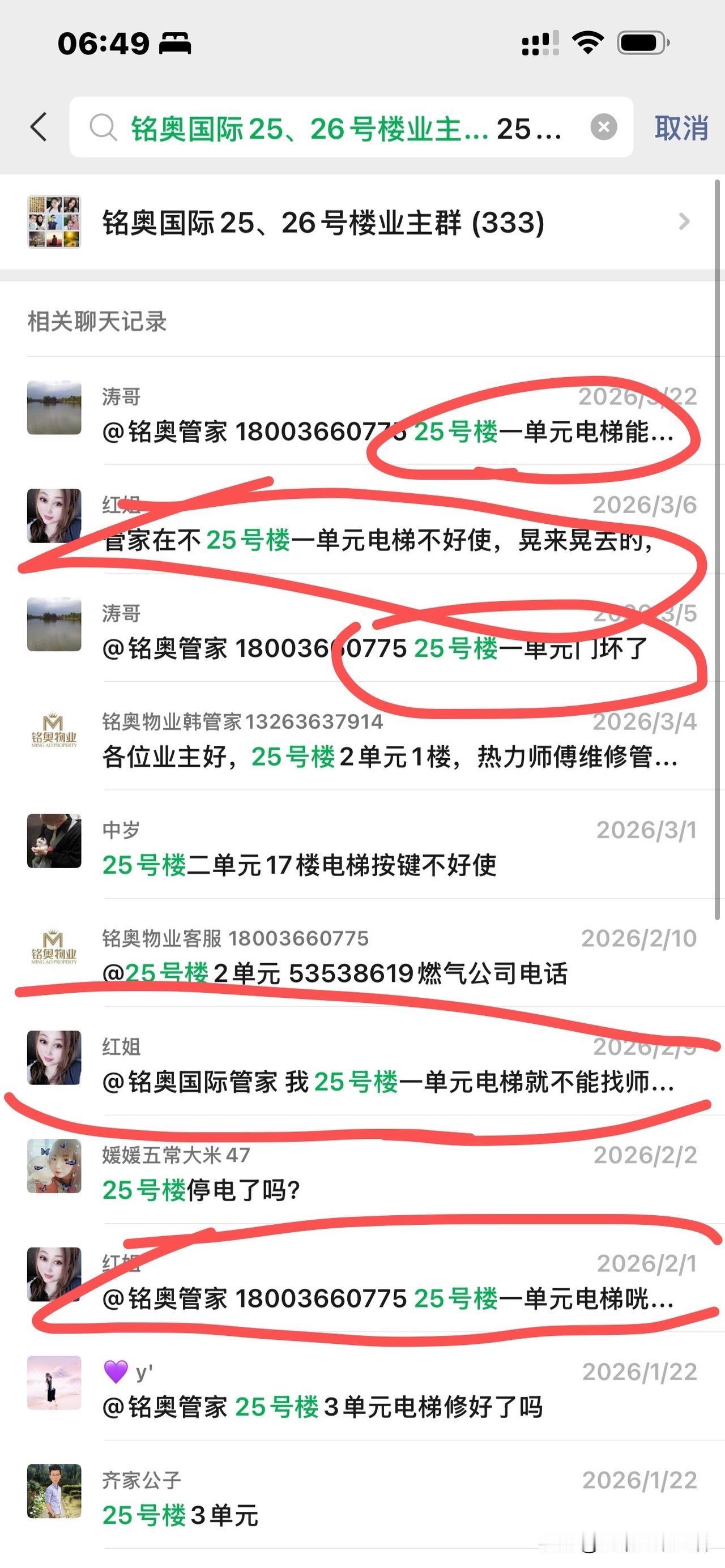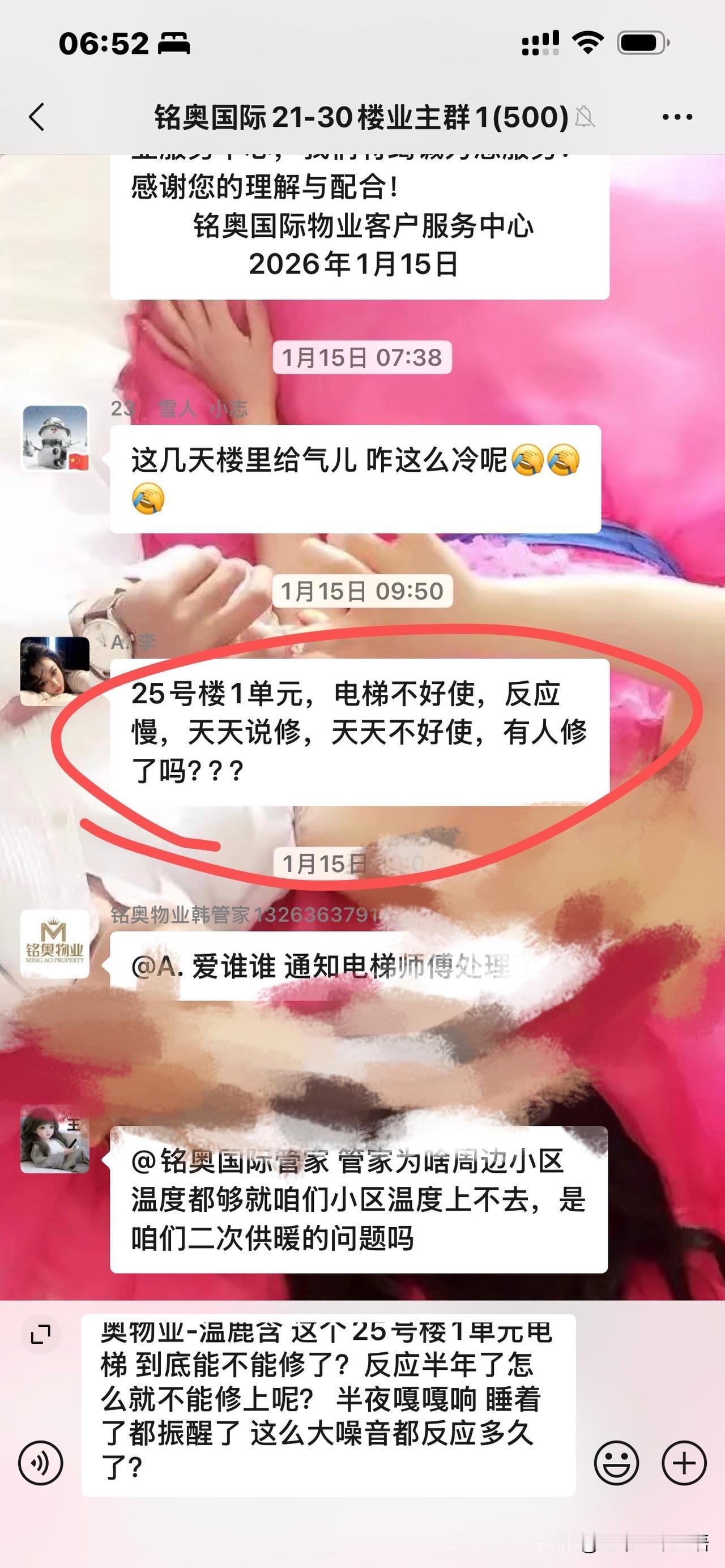 有一个单元电梯一直不好使,群里有个大姐几乎天天反应,也得不到处理,最后他家16楼天天爬楼……