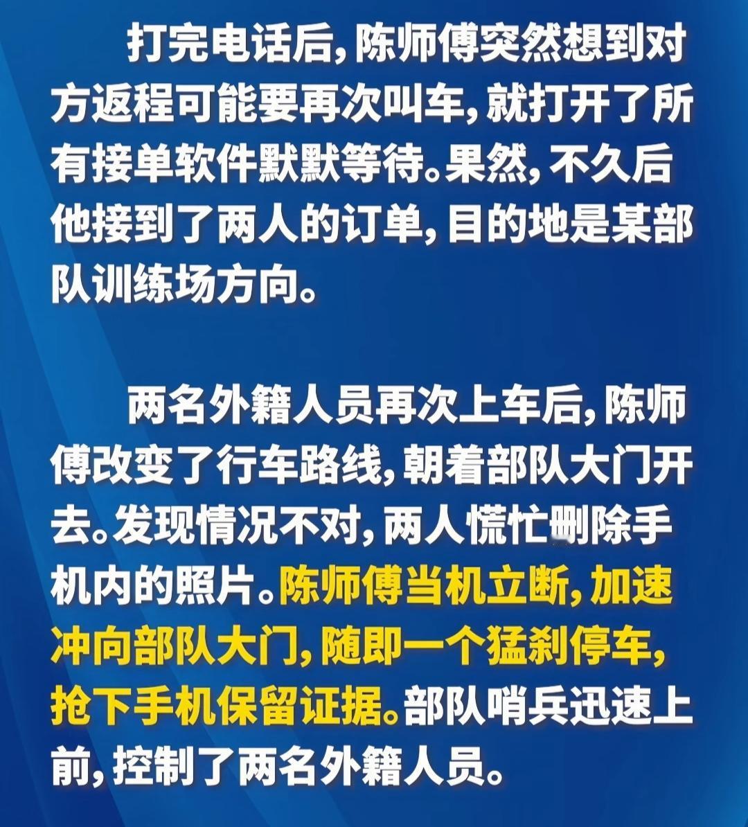 这位网约车陈师傅,是一位爱国的人,也是一位极其勇敢的人。
