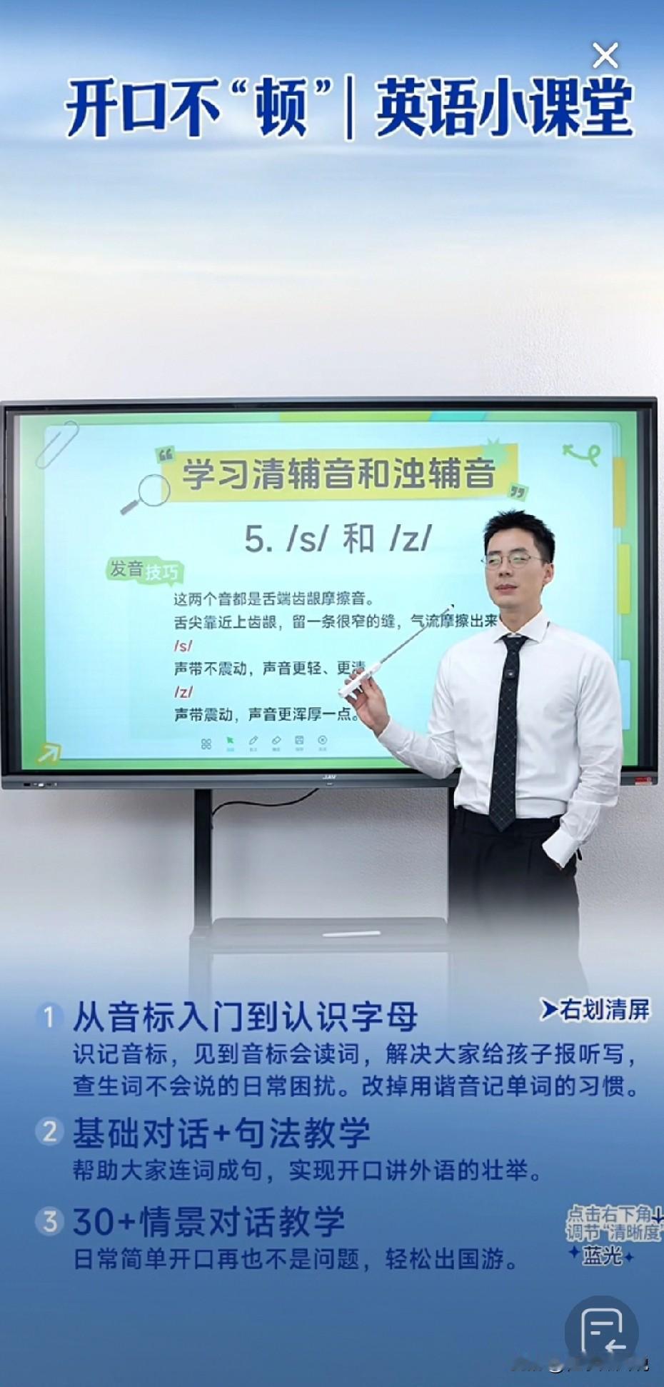 直播间两万多人,静静地听顿顿老师讲英语,从最基本的字母发音学起,元音字母、辅音字母,好像又回到学生时代。