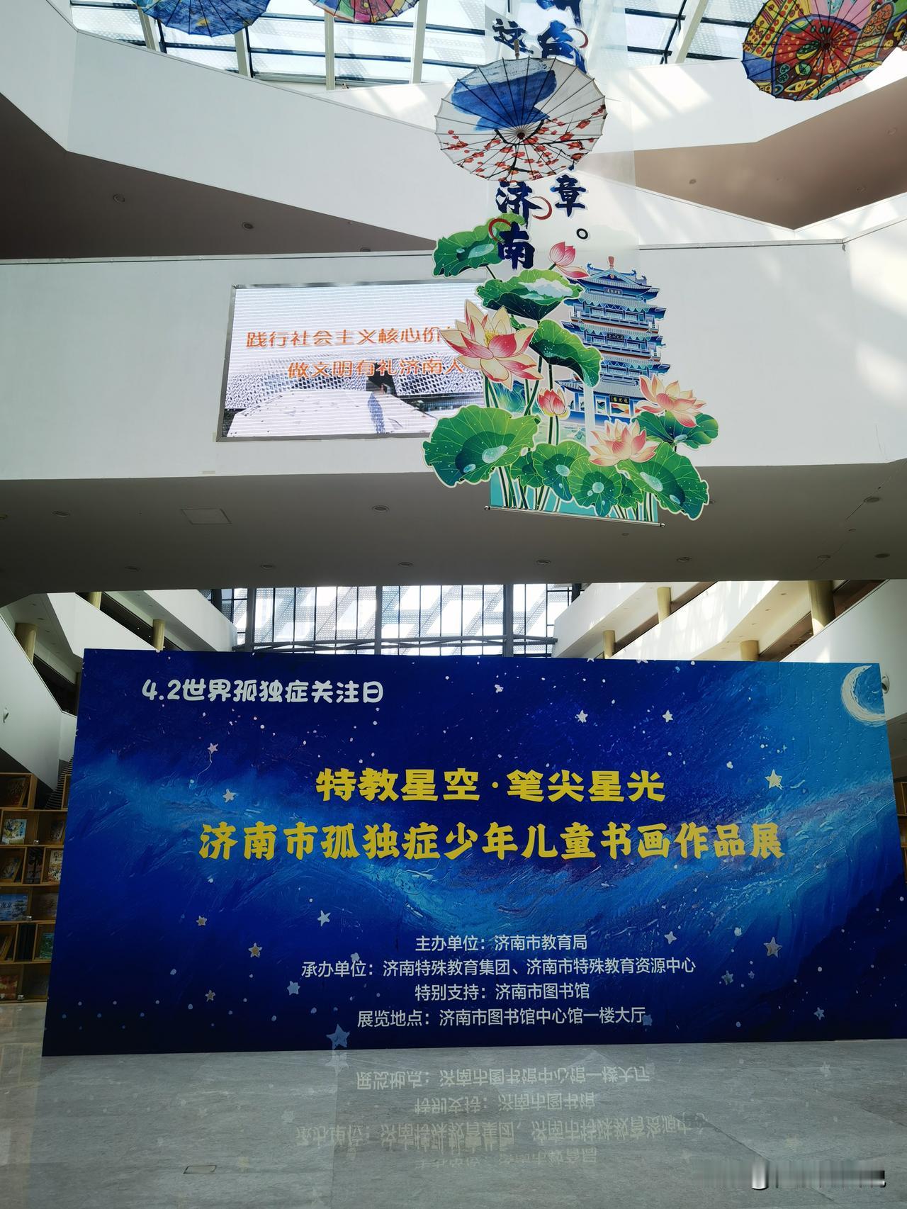 你知道吗?在济南市图书馆一楼大厅,正在举行一场不同寻常的书画展,这些作品来自济南市特殊教育学校的孩子们。