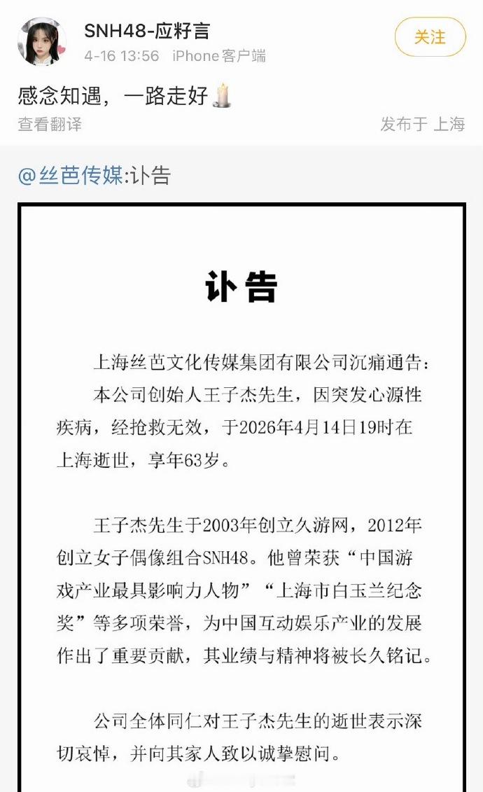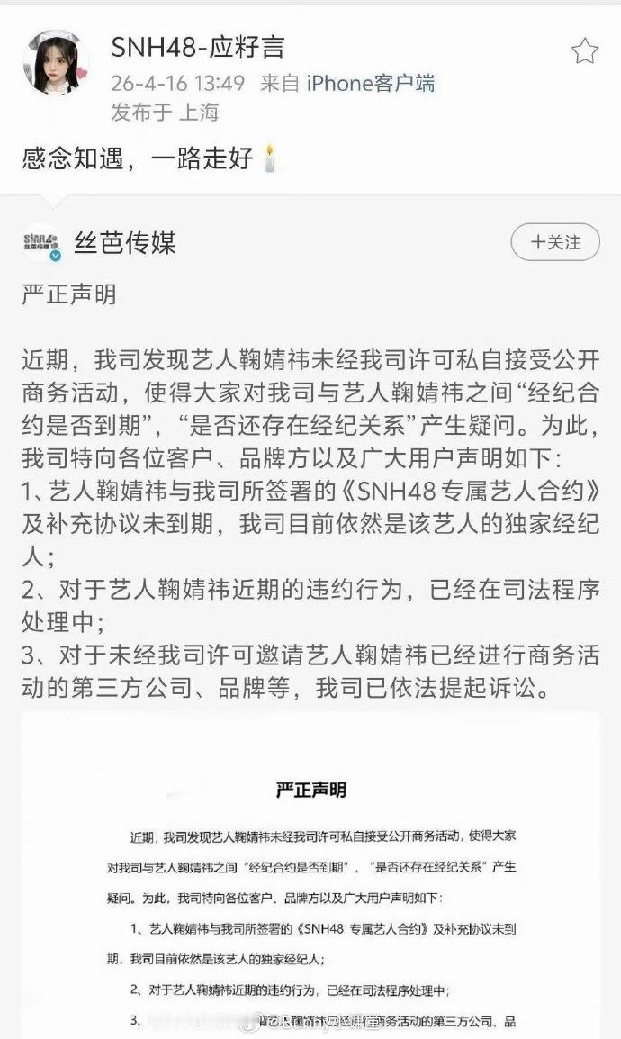 应籽言 我没睁开眼应籽言悼念王子杰转错了 应籽言悼念王子杰转错了,转成了丝芭此前发的关于鞠婧祎的声明