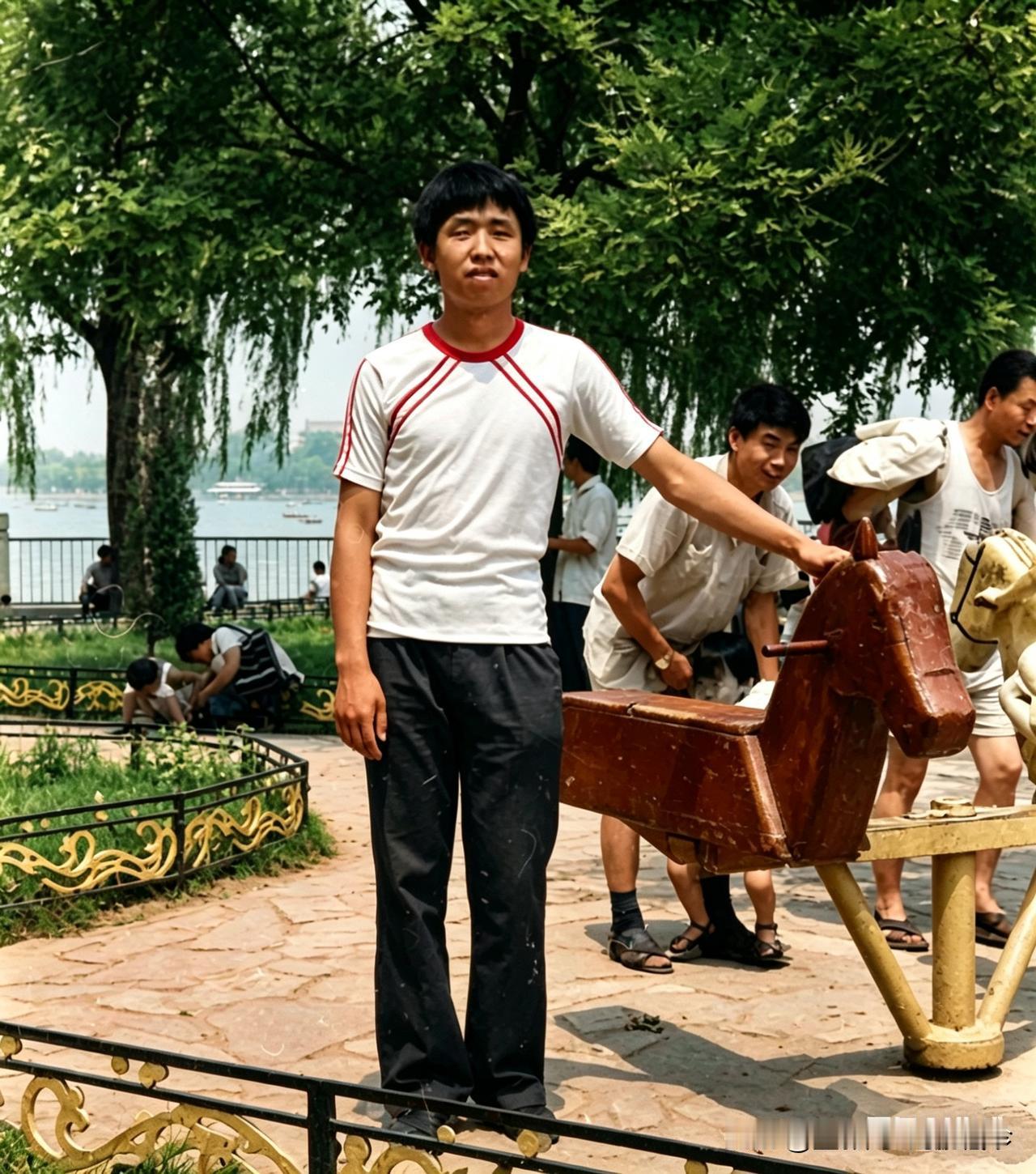 1965年,我2岁在北海公园游乐园骑木马照片。1981年,我18岁在原地拍照。今年我63岁,北海公园游乐场连同木马已经没有了。回不去的青春留不住的岁月 ,