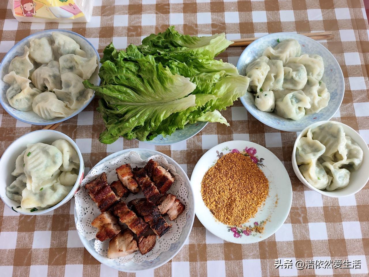 我就和面、摘韭菜,准备中午包饺子,各干各的。