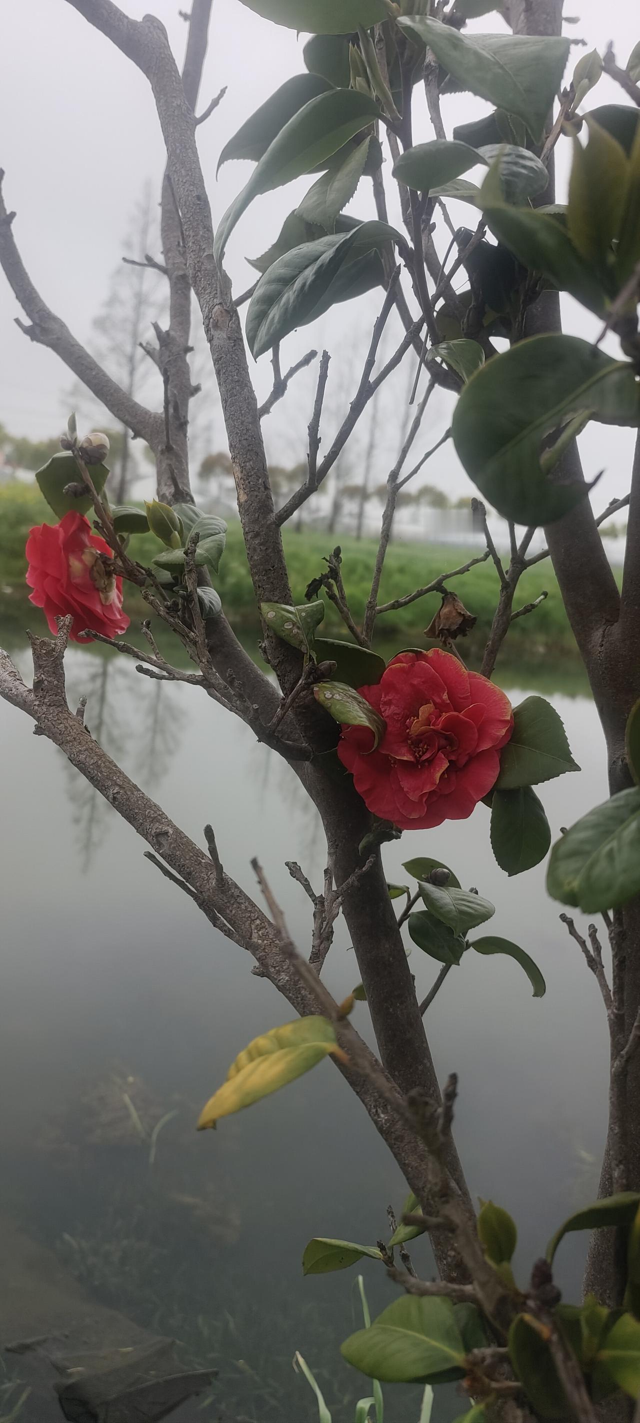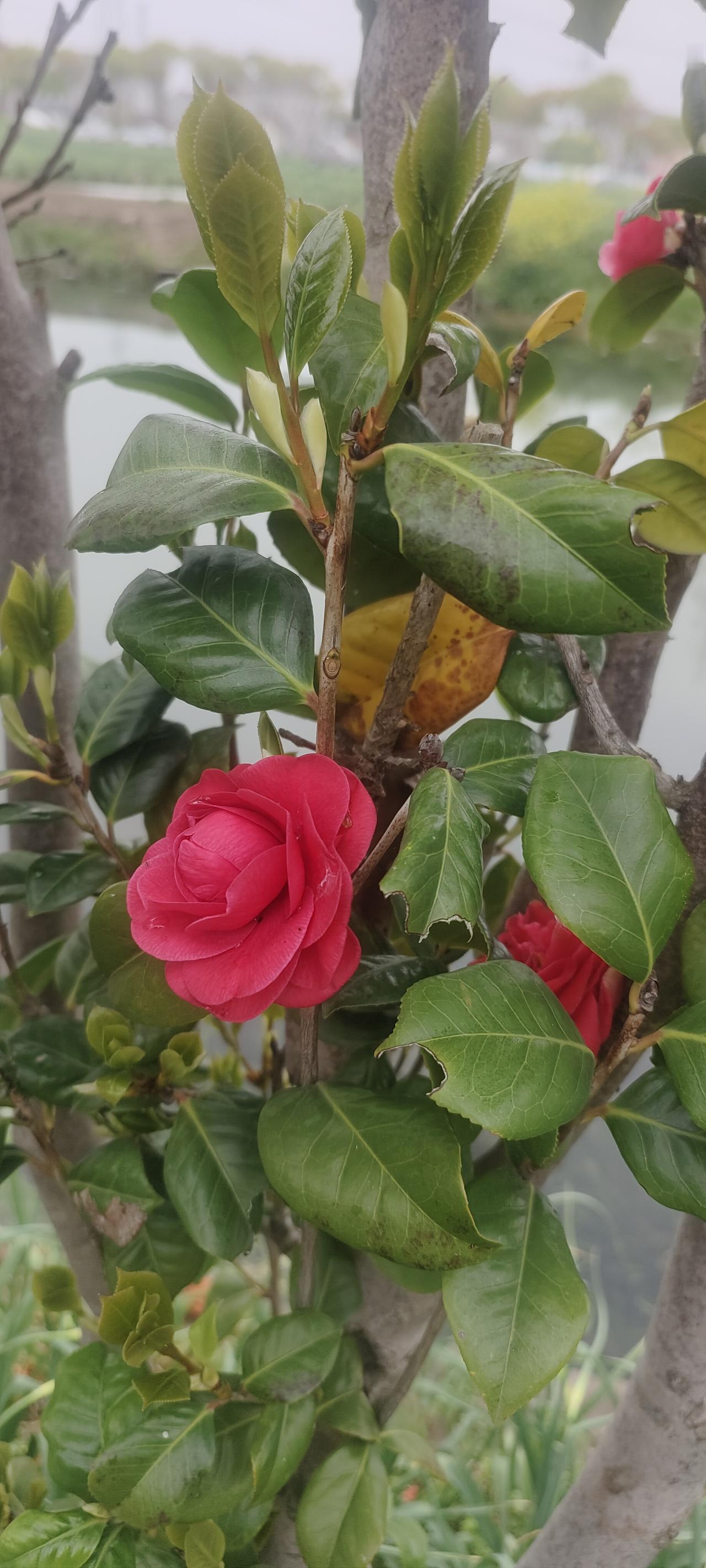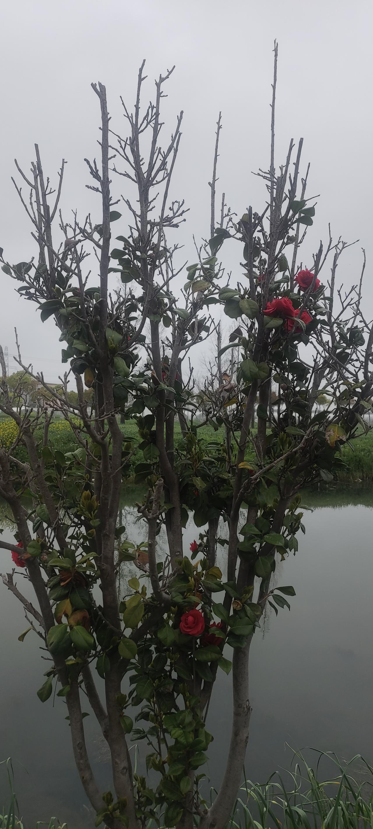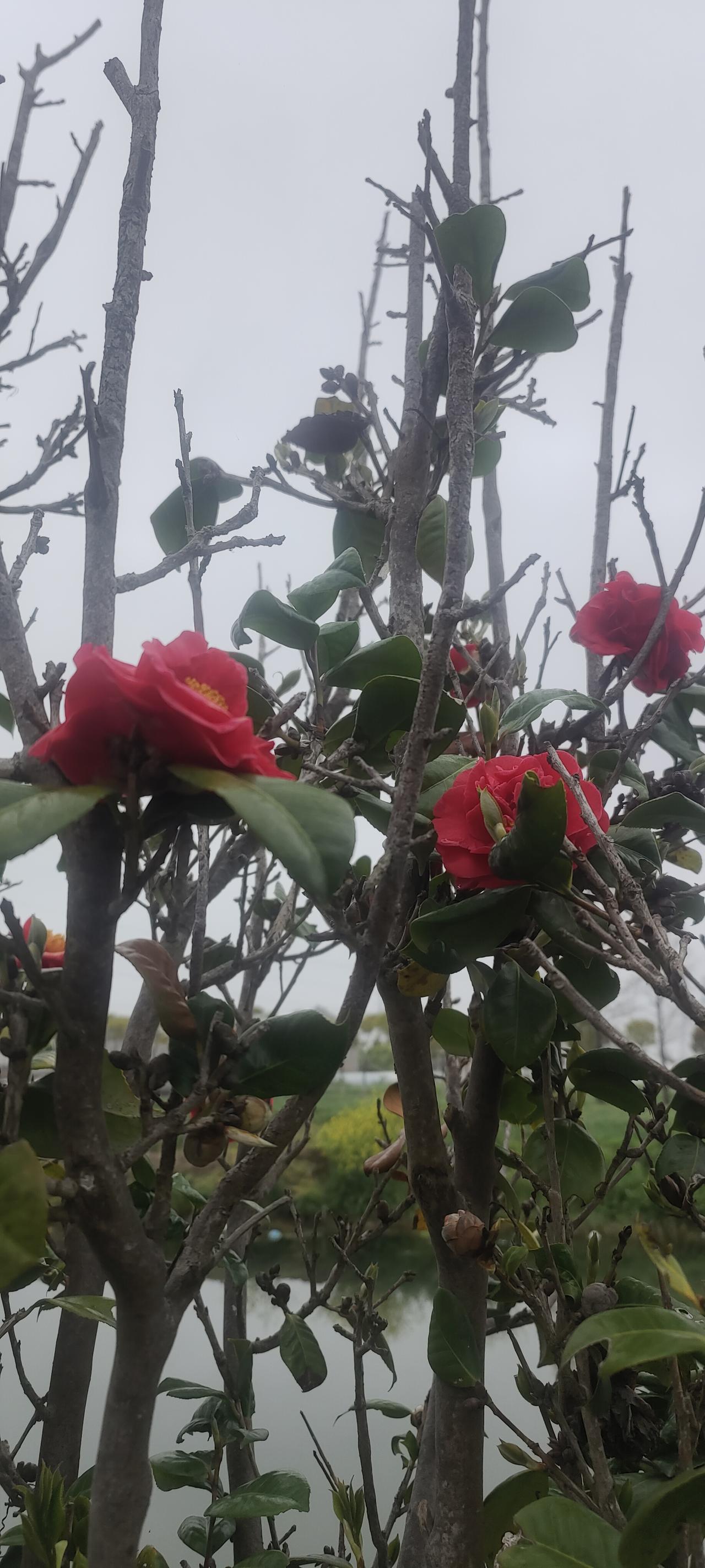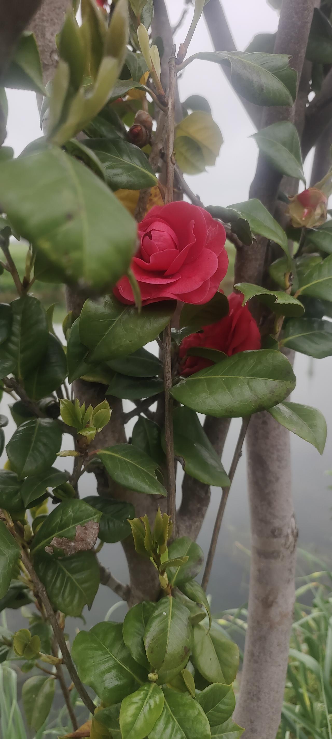 树上开了大红花,貌似红玫瑰,但是又不是玫瑰,很漂亮可惜不知道叫什么名字!有知道的