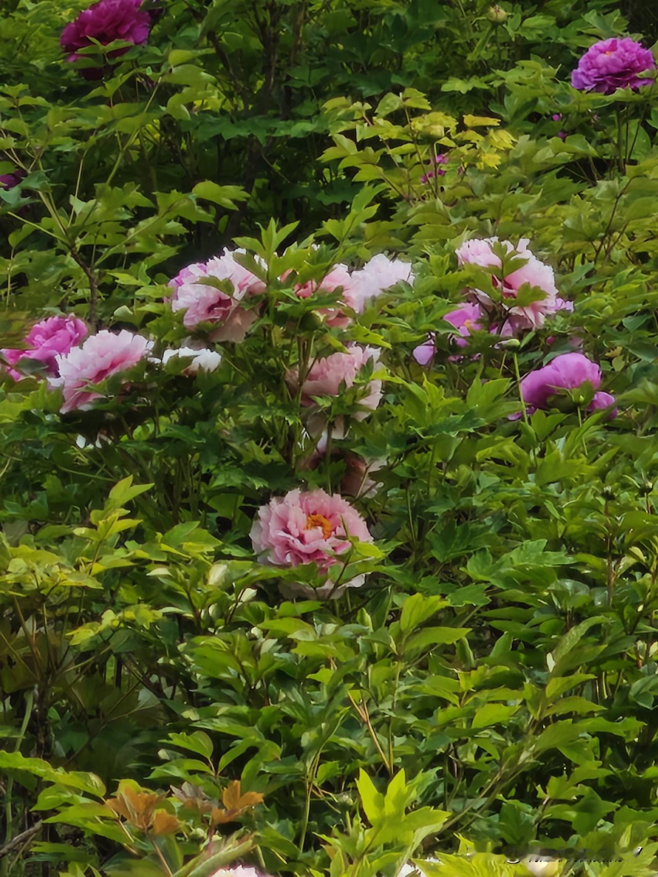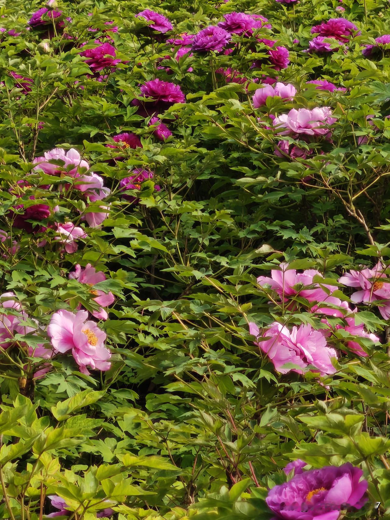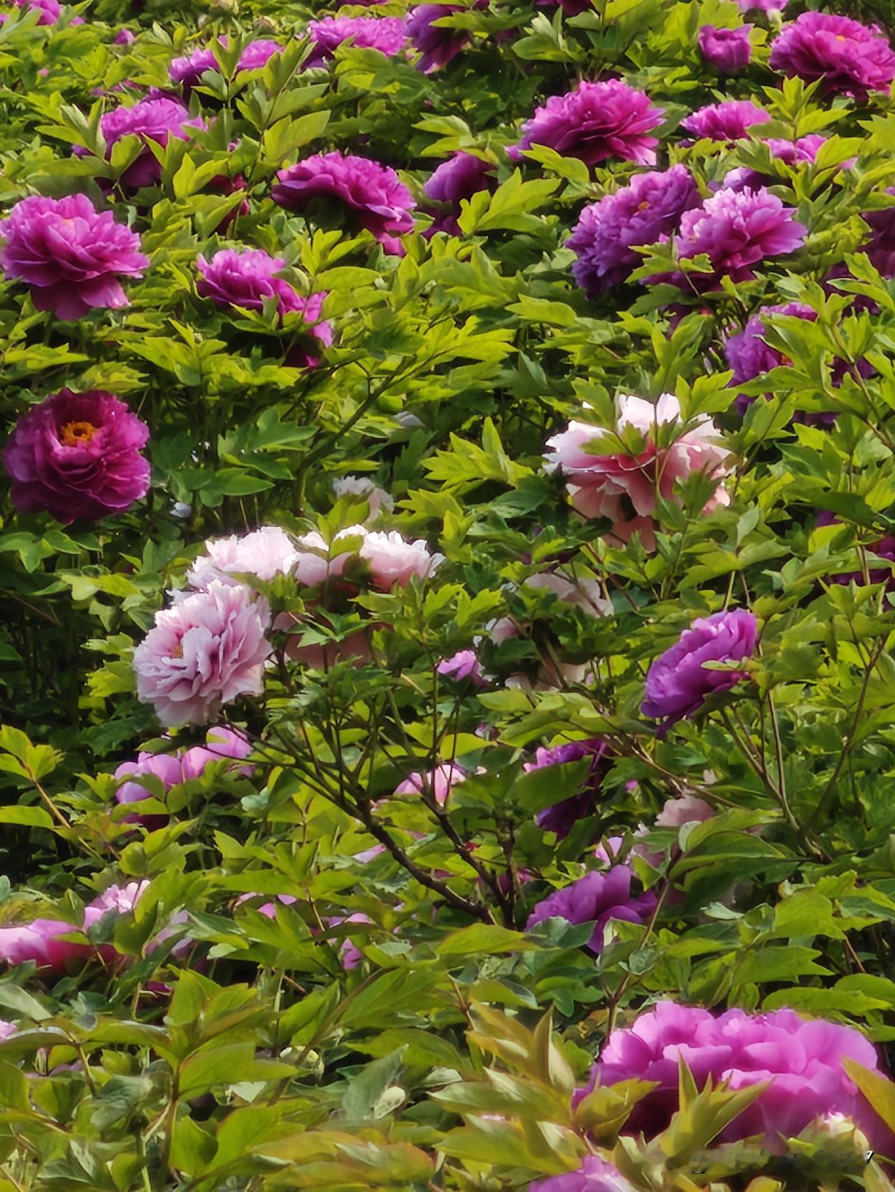 原来,公园里的牡丹栽的比较少,但是花色很多,有白的,有粉的,有大红的,深粉的,浅粉的,特别好看。可是前两年又大批量栽种了一批,花色非常单一,都是这种浅紫色的,不好看。