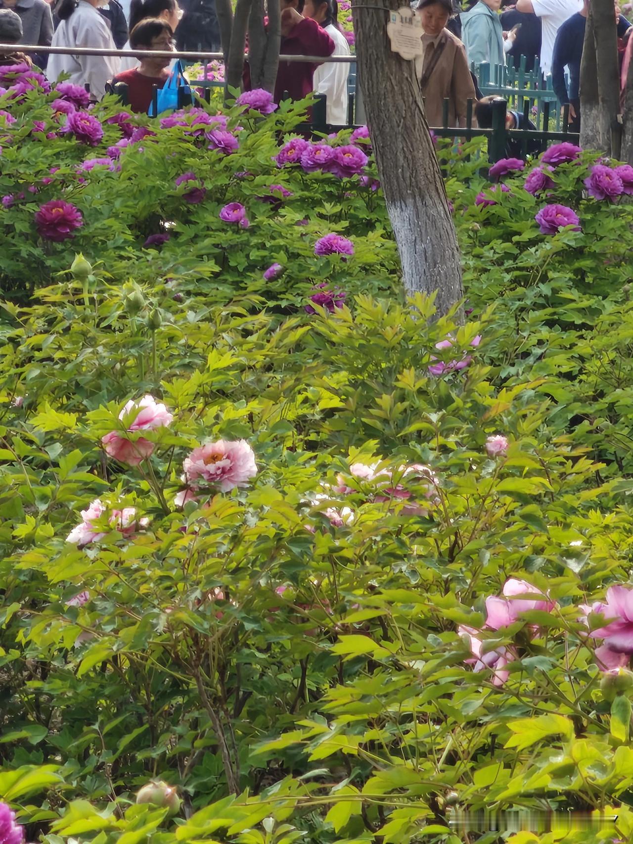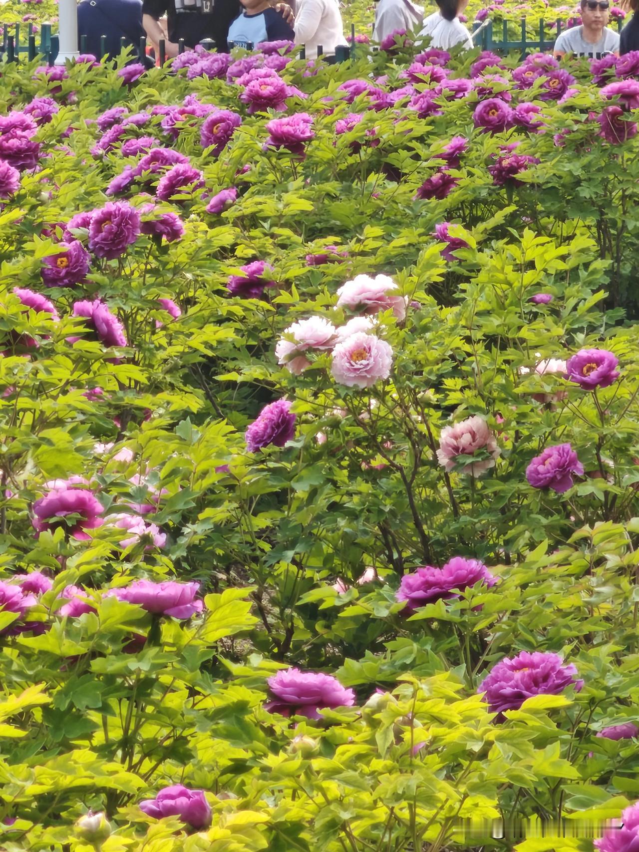 公园里的牡丹花盛开了,看牡丹的人呀,比牡丹花也不少!