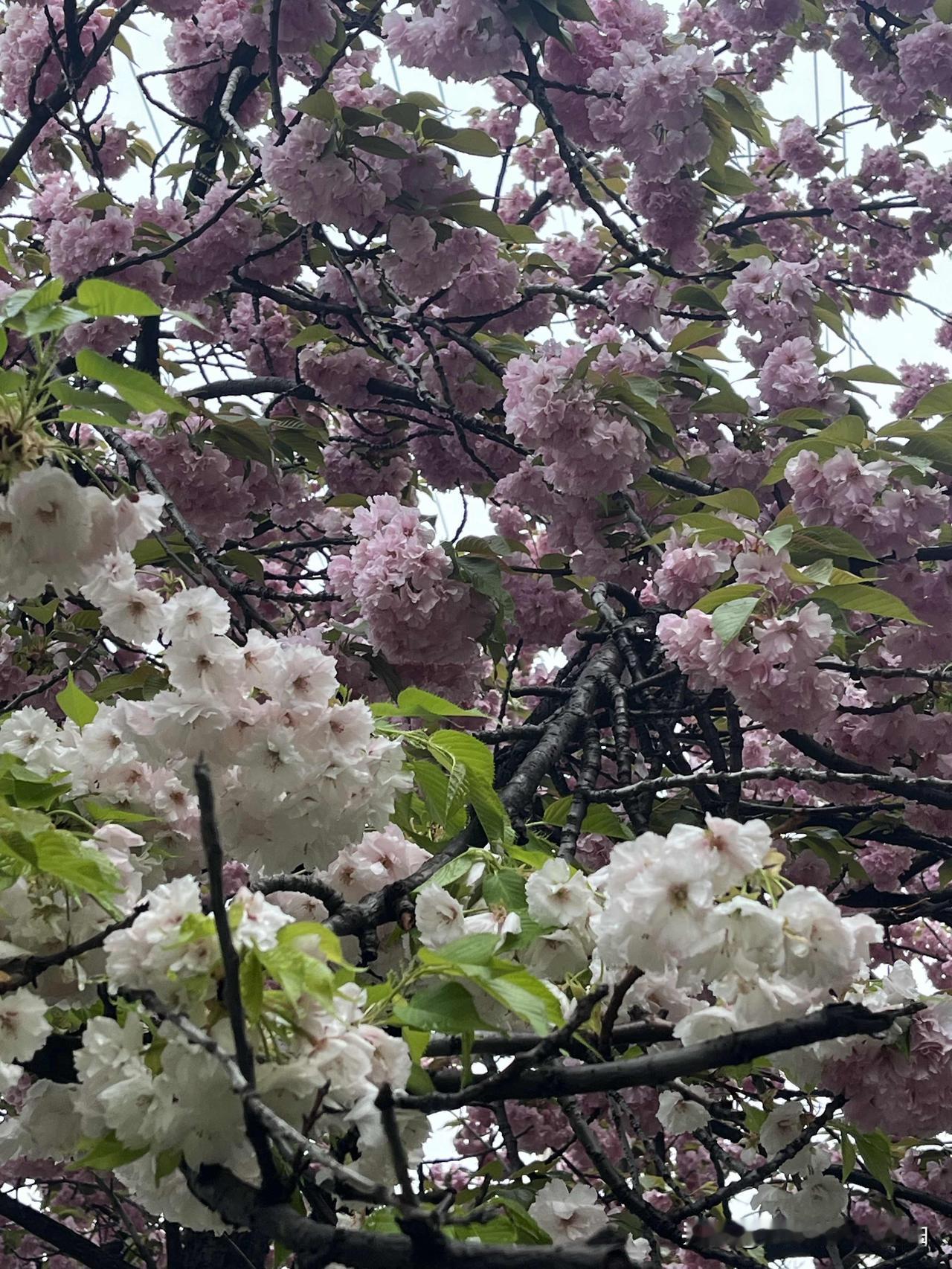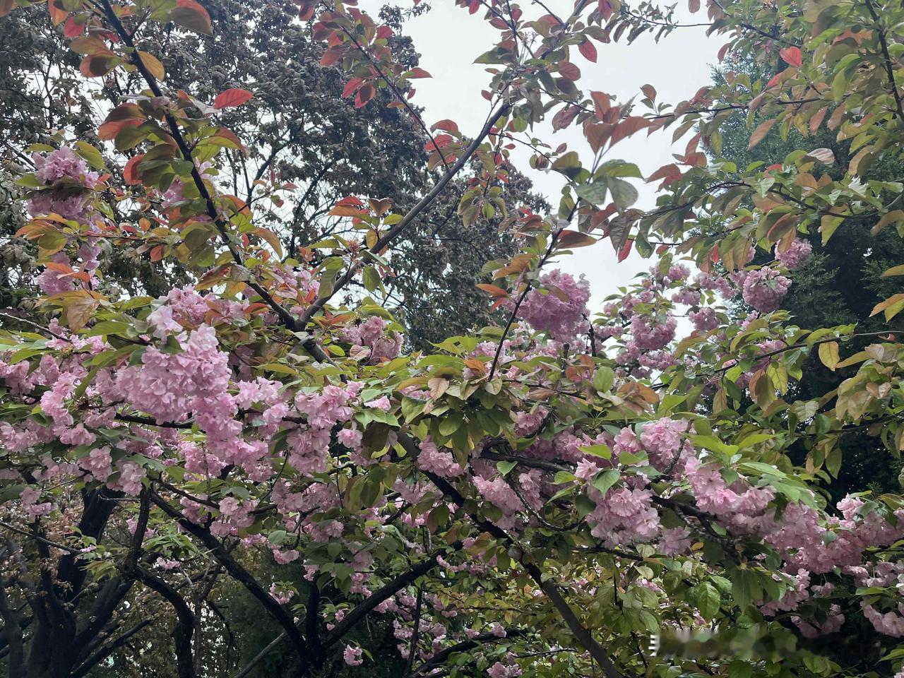 再往前走,也仔细看了看那一小棵不起眼的樱花树。才发现每朵花都是花朵朝下的。