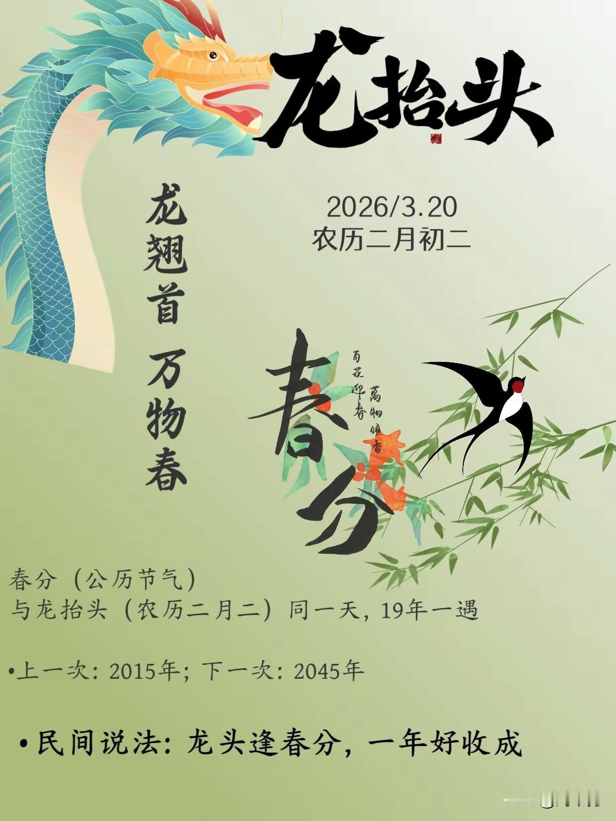 二月二,春分恰逢龙抬头。古人说这一天,苍龙七宿从东方升起,昂首望向人间。