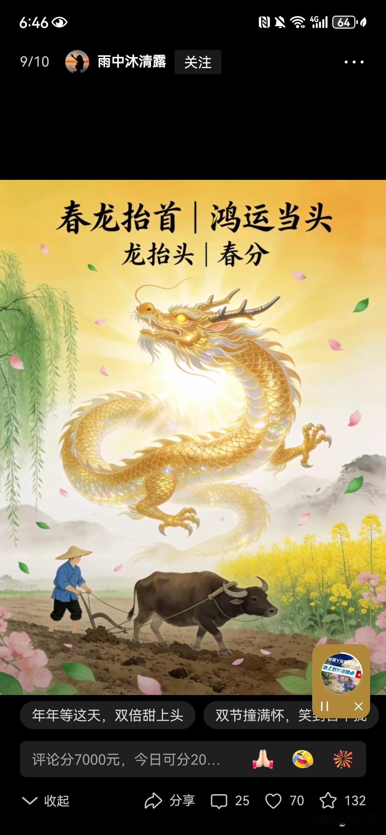 今日春分龙抬头,昼夜平分万事悠。