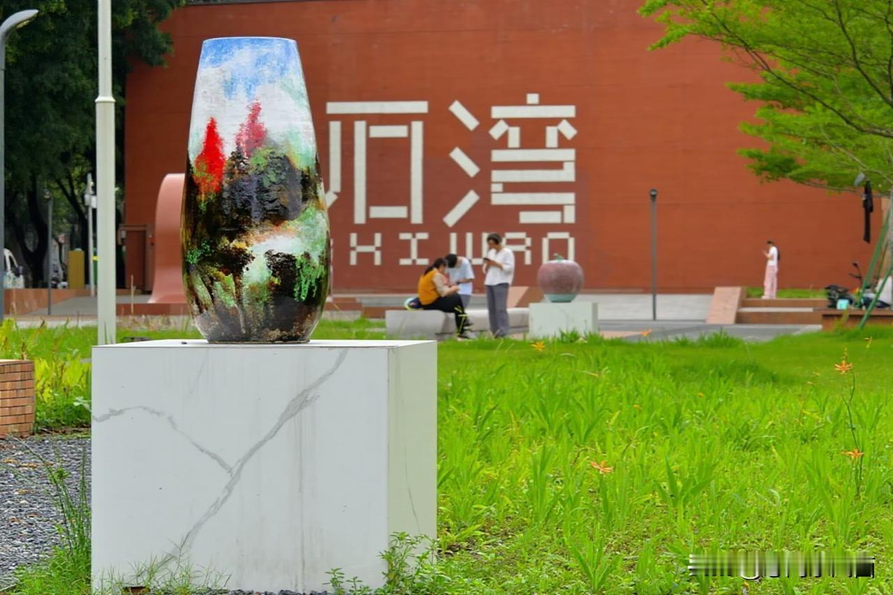 公园内,陶瓷艺术品散落于绿茵之间,匠心与自然相融。